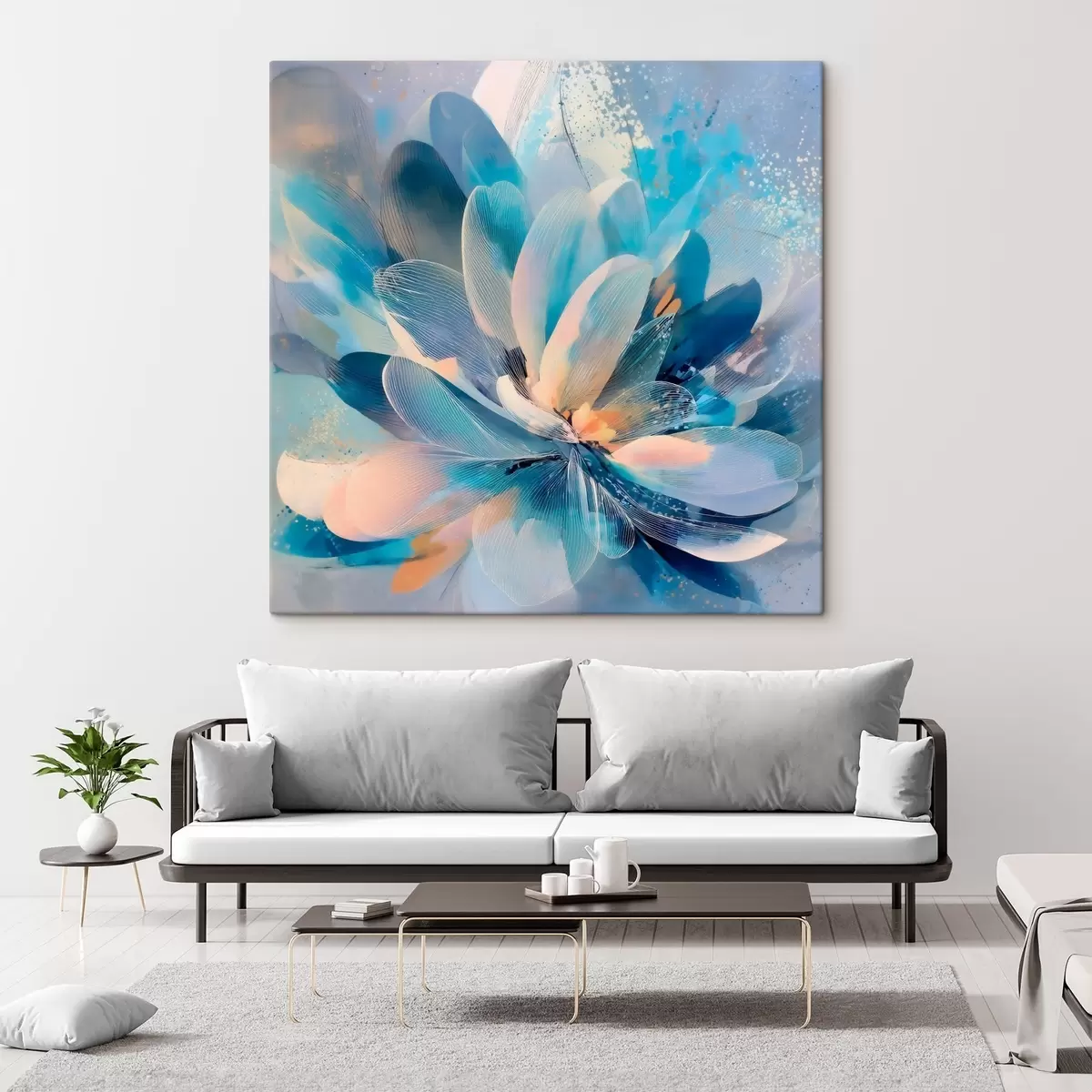 Tablouri Floare abstractă în nuanțe reci, în stilul unui poster artistic s48186