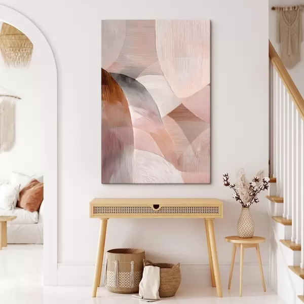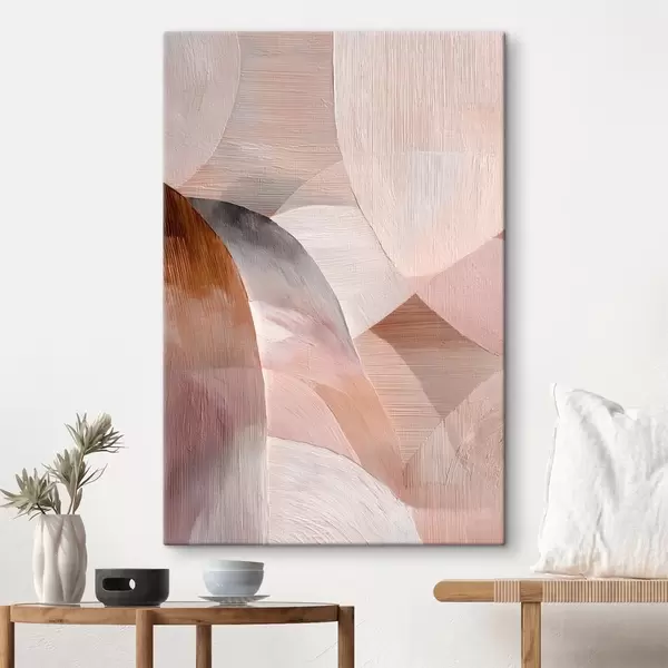 Tablouri Abstracție geometrică într-o paletă de culori calde, în nuanțe de piersică, în stilul unui poster artistic s48189