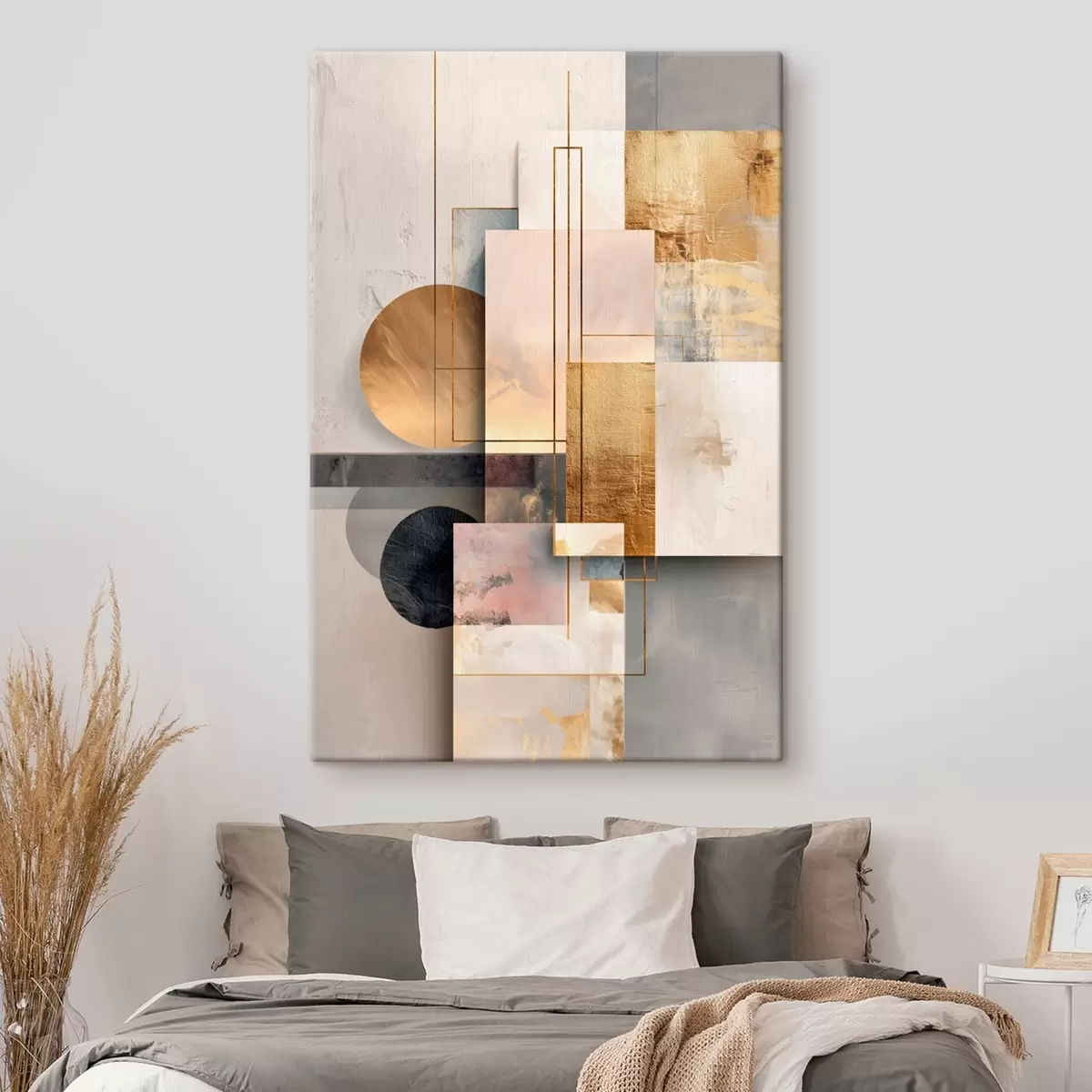 Pictură pe pânză Colaj abstract compus din forme geometrice și elemente texturate Nr s48195