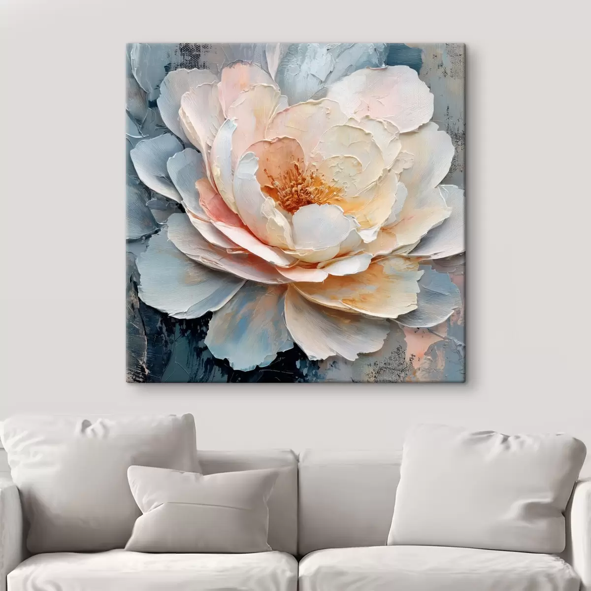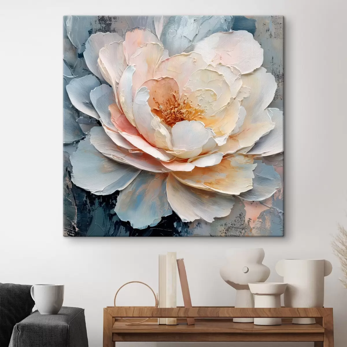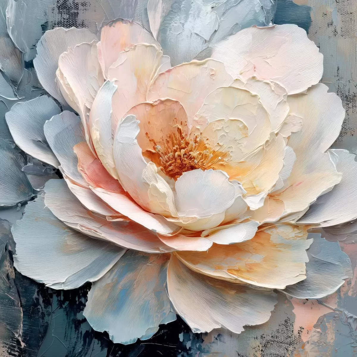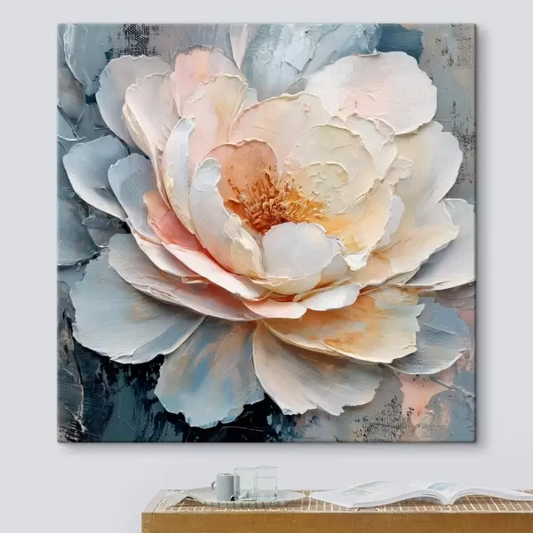 Tablouri Prim-plan al unei flori, realizat cu tușe de pensulă expresive și texturate, în stilul picturii contemporane s48198
