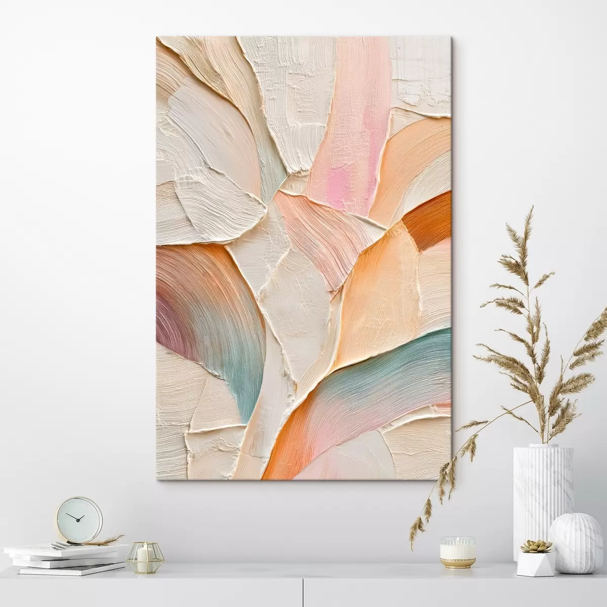 Pictură pe pânză Fundal abstract cu tușe dinamice în nuanțe de piersică și albastru Nr s48202