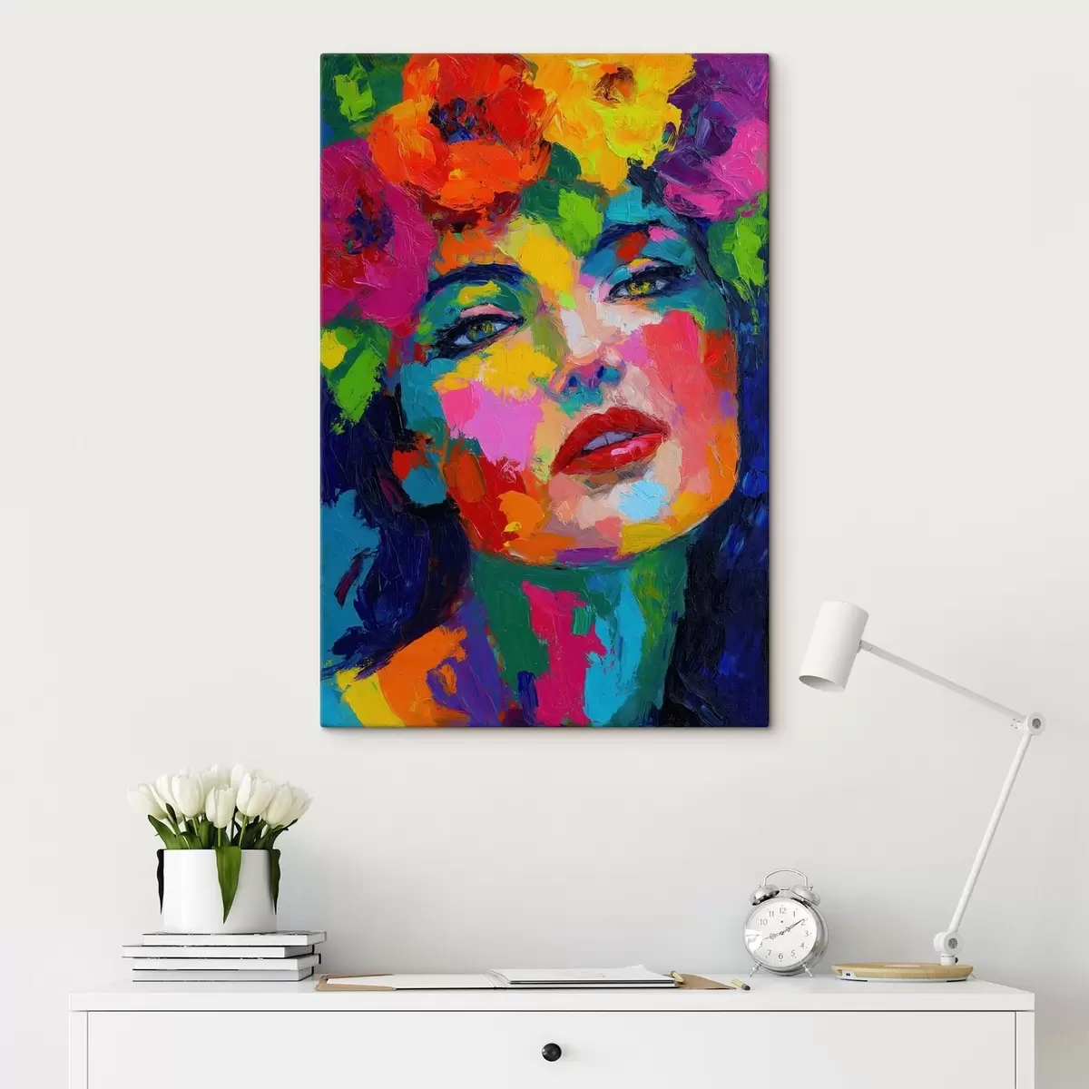 Tabloul poate fi agățat imediat după primirea sa. Tabloul va fi întins pe o targă din lemn de 2 cm lățime.