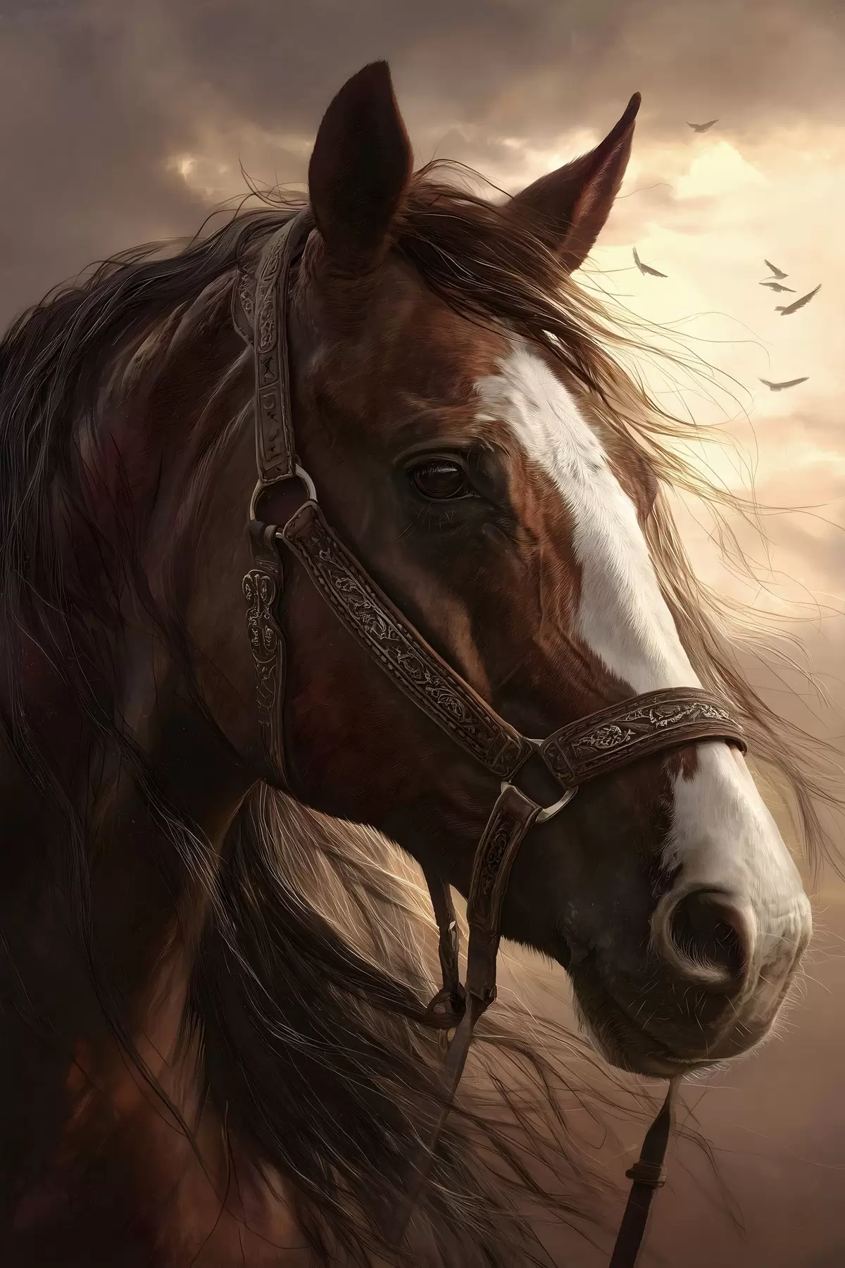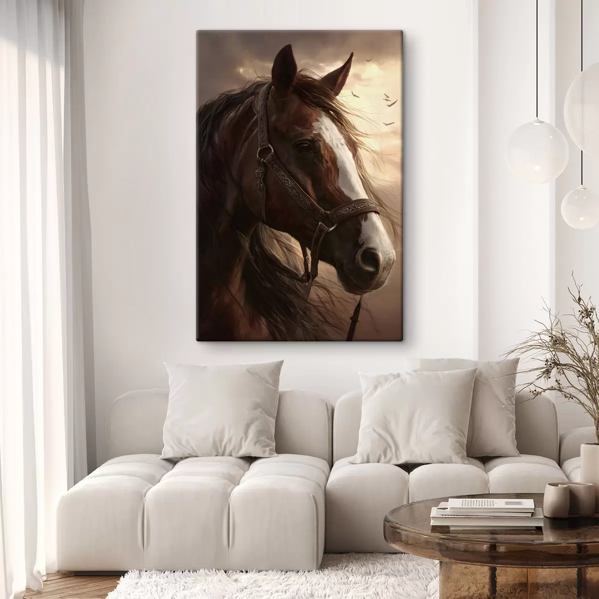 Pictură pe pânză portretul unui cal bălai Nr s48291