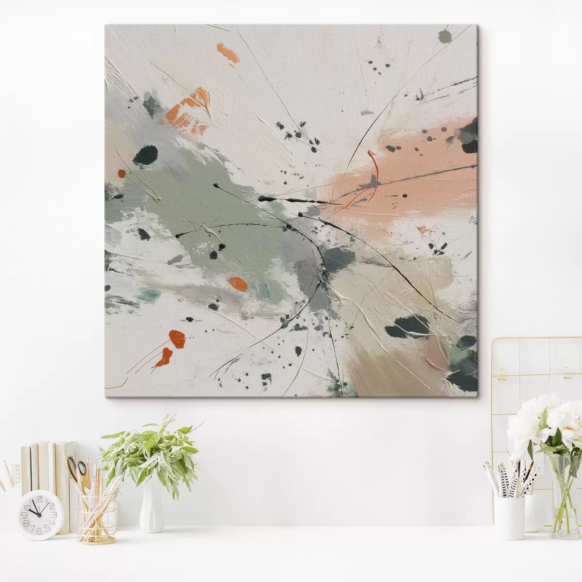 Tabloul poate fi agățat imediat după primirea sa. Tabloul va fi întins pe o targă din lemn de 2 cm lățime.