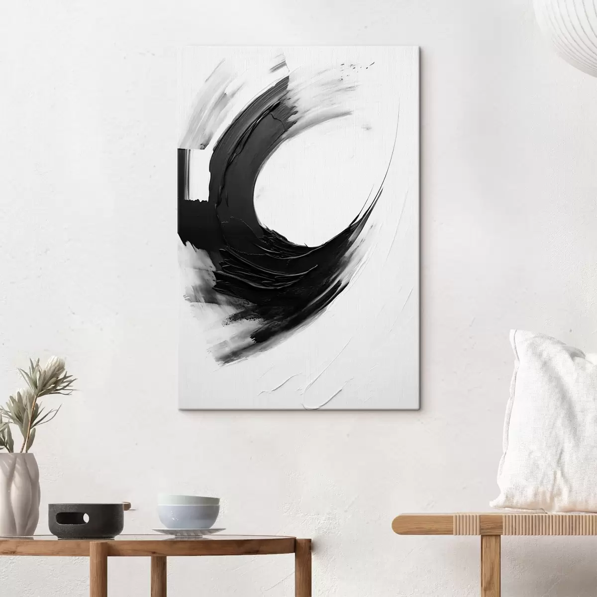 Tablouri Contur negru abstract realizat cu pensula pe un fundal deschis s48340