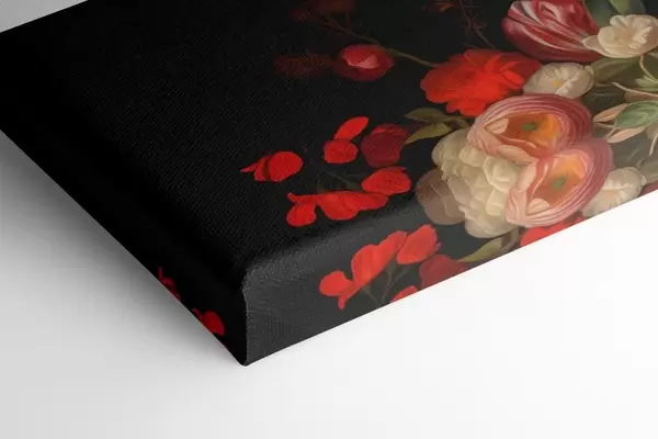 Pictură pe pânză Buchet de flori într-o vază pe un fundal întunecat Nr s48351