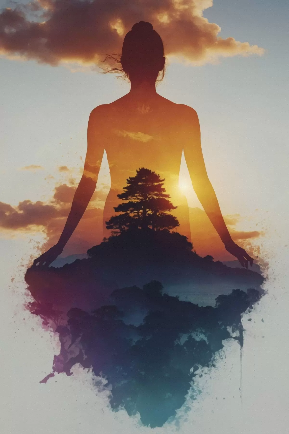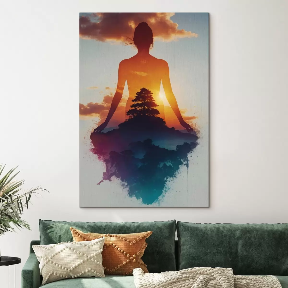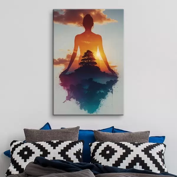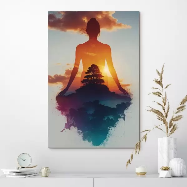 Pictură pe pânză Siluetă umană pe fundalul unui peisaj cu apus de soare Nr s48364