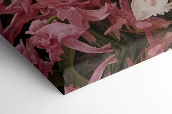 Pictură pe pânză Buchet de flori tropicale, orhidee cu frunziș verde pe fundal Nr s48385