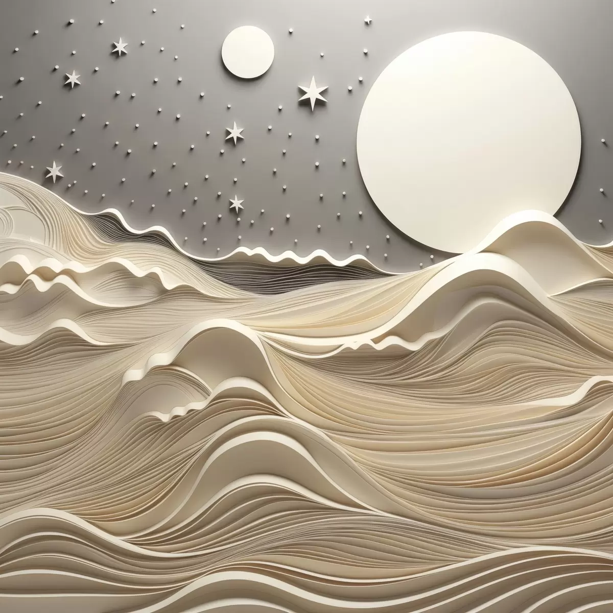 Tablouri Un peisaj minimalist stilizat, cu dealuri ondulate și o lună mare pe un cer înstelat, artă abstractă s48401