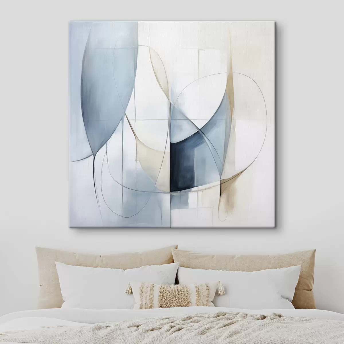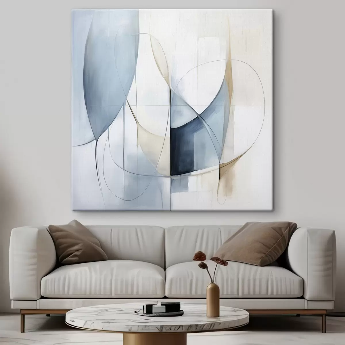 Pictură pe pânză Compoziție abstractă minimalistă cu forme albastre și bej Nr s48404