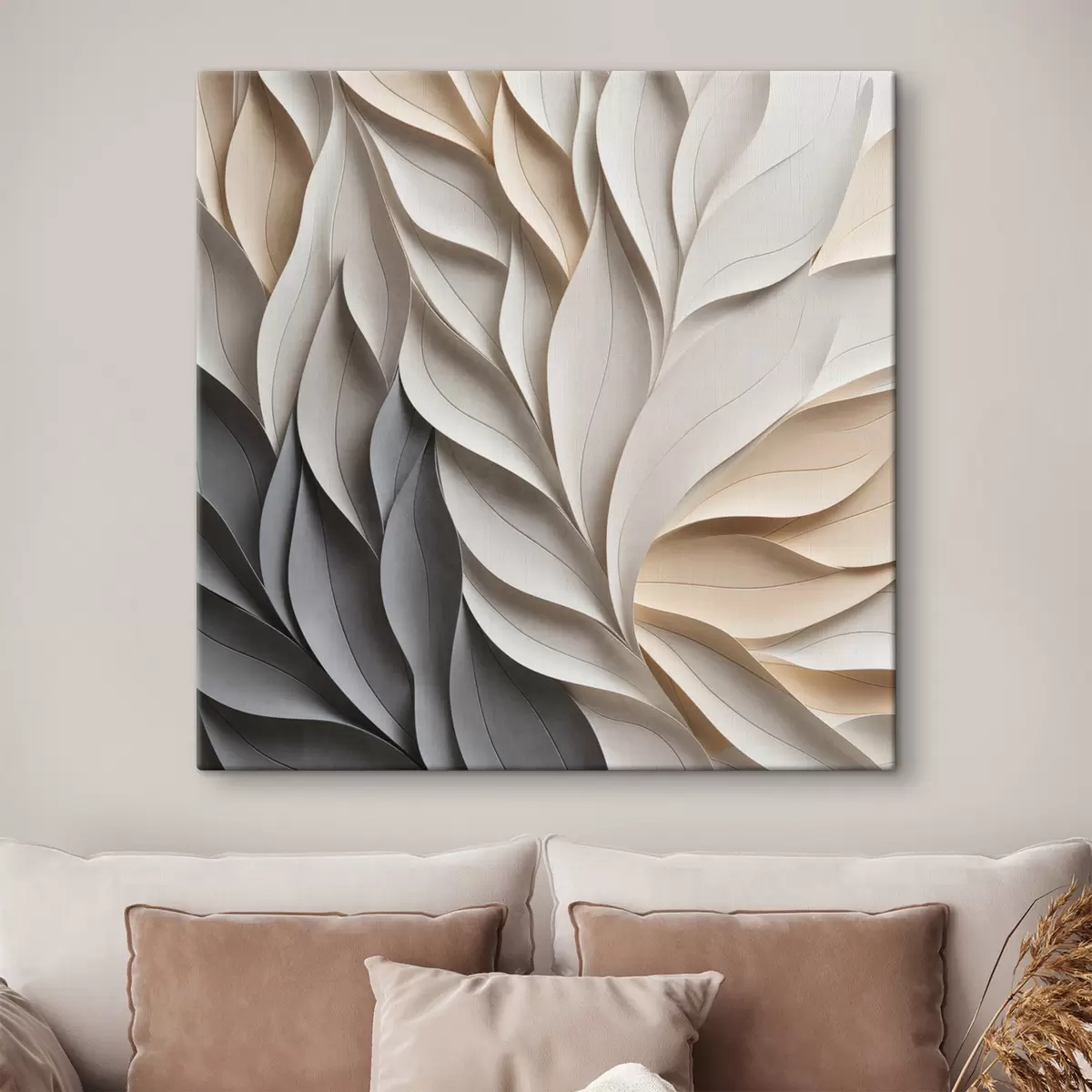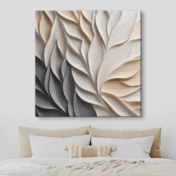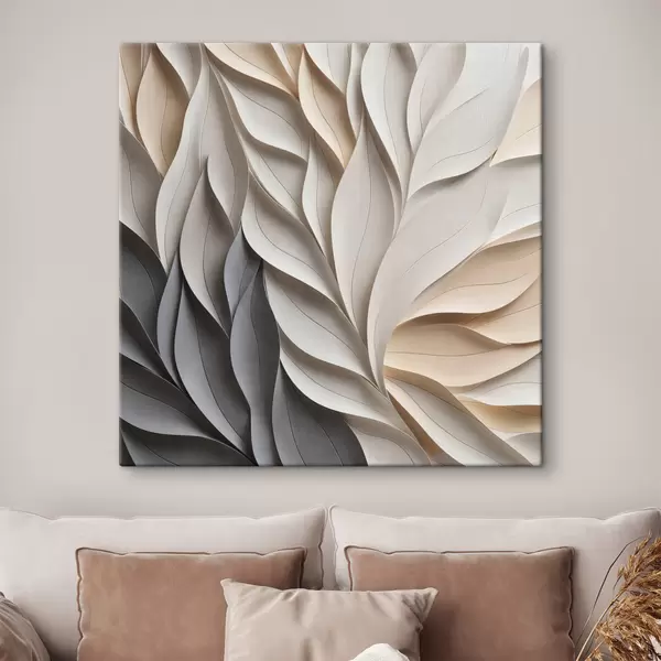 Pictură pe pânză Un model abstract cu frunze suprapuse, cu textură, în nuanțe neutre de bej, crem și gri Nr s48407