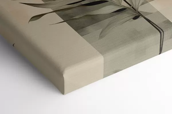 Pictură pe pânză O plantă de culoare verde închis, cu forme geometrice abstracte și texturi de acuarelă în nuanțe de bej și verde Nr s48410