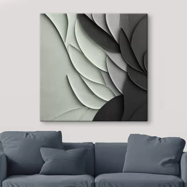 Pictură pe pânză Frunze stilizate, în nuanțe de gri, alb și verde pal Nr s48412
