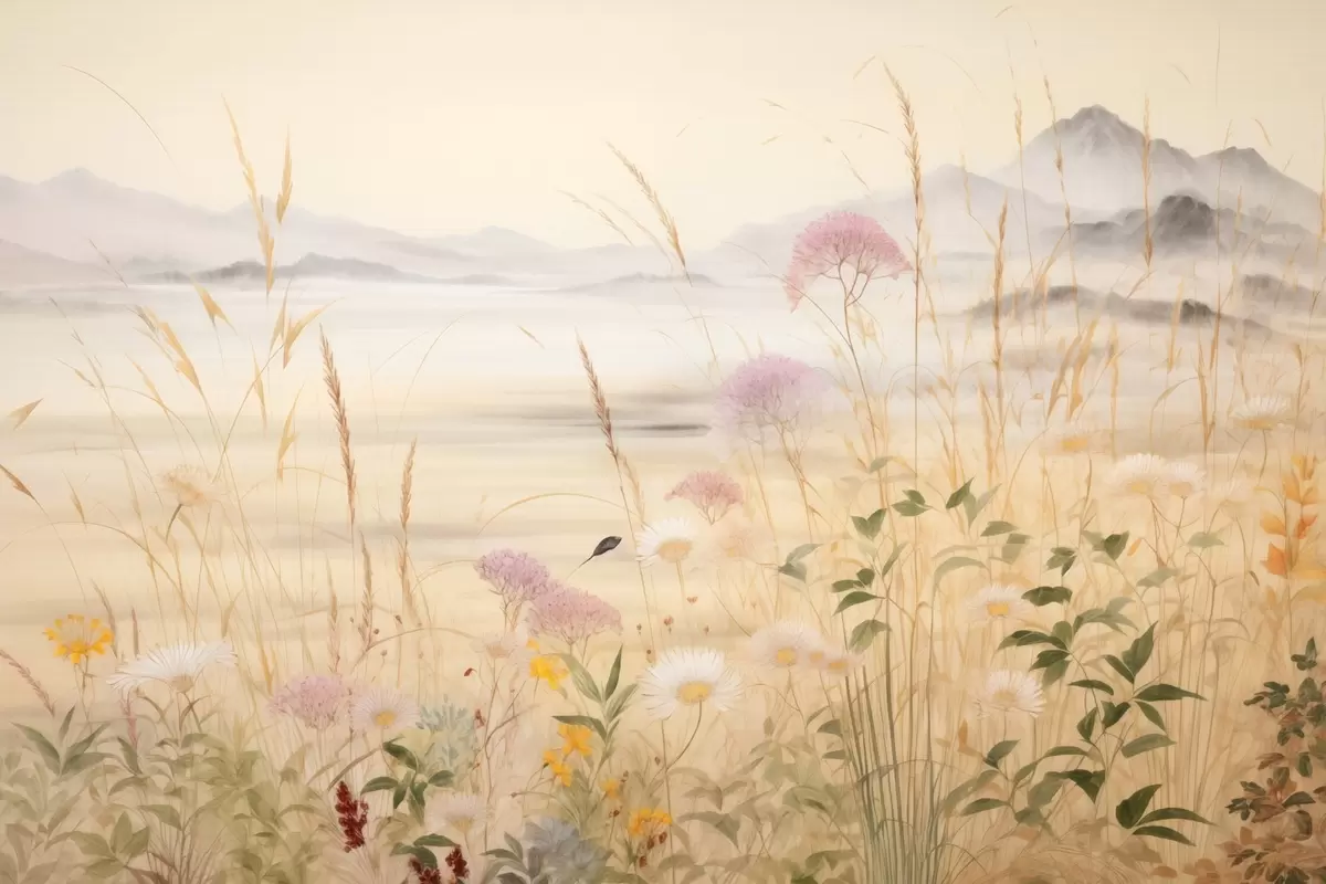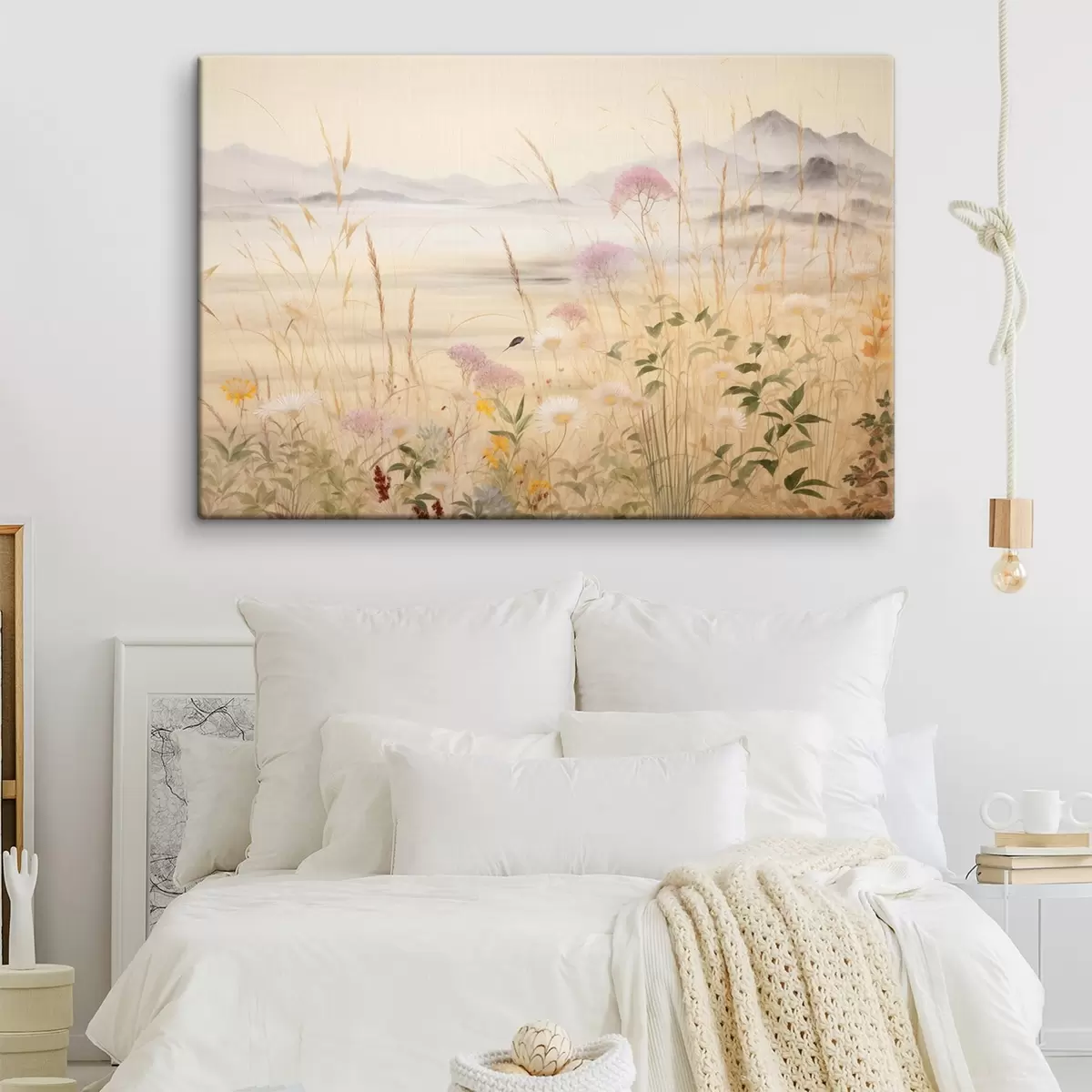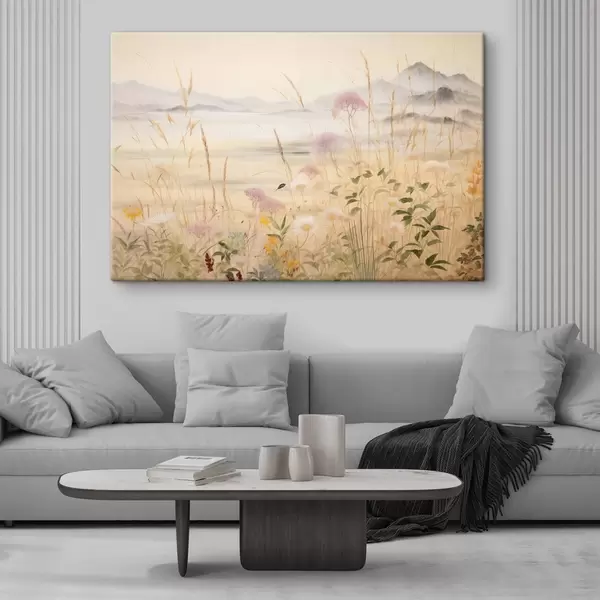 Tablouri Câmp de flori bej, ierburi de luncă, peisaj delicat s48480