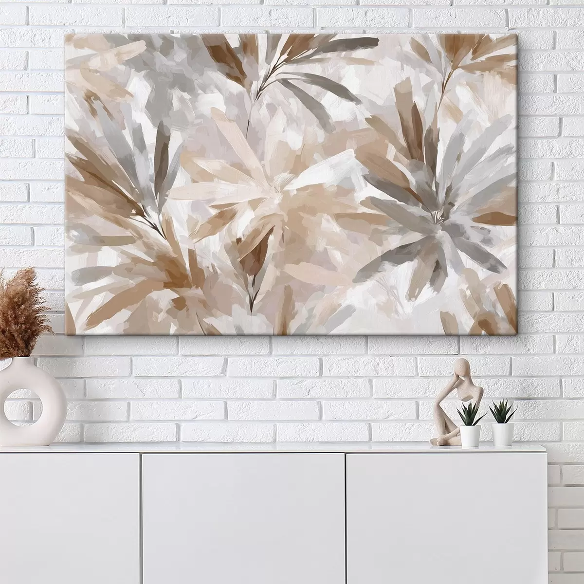 Tablouri Flori abstracte de culoare bej, artă texturată s48483