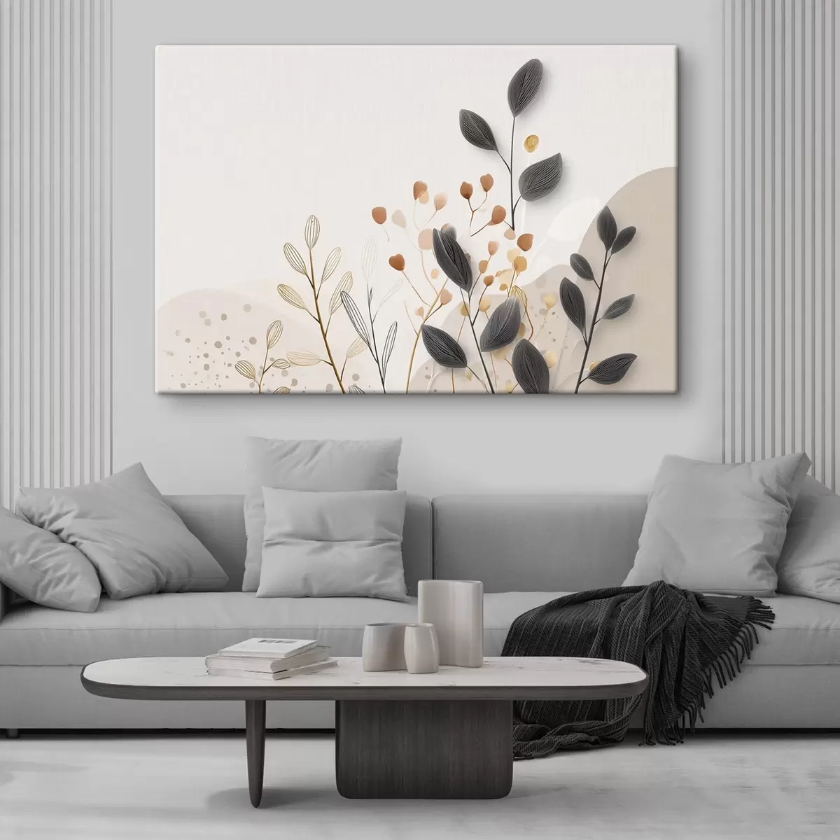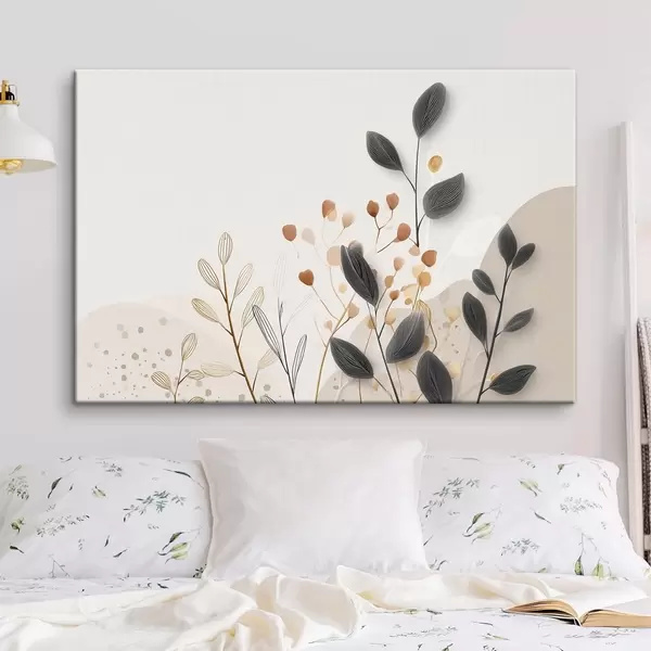 Pictură pe pânză Botanică, minimalism, frunze bej Nr s48485