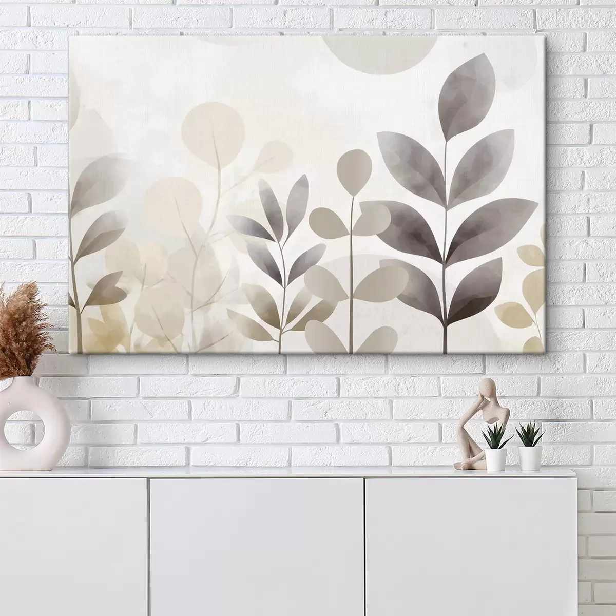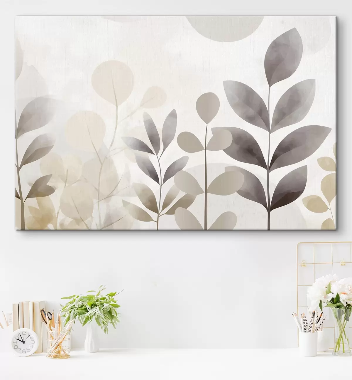 Tablouri Siluete de frunze în nuanțe de bej și gri, minimalism s48487