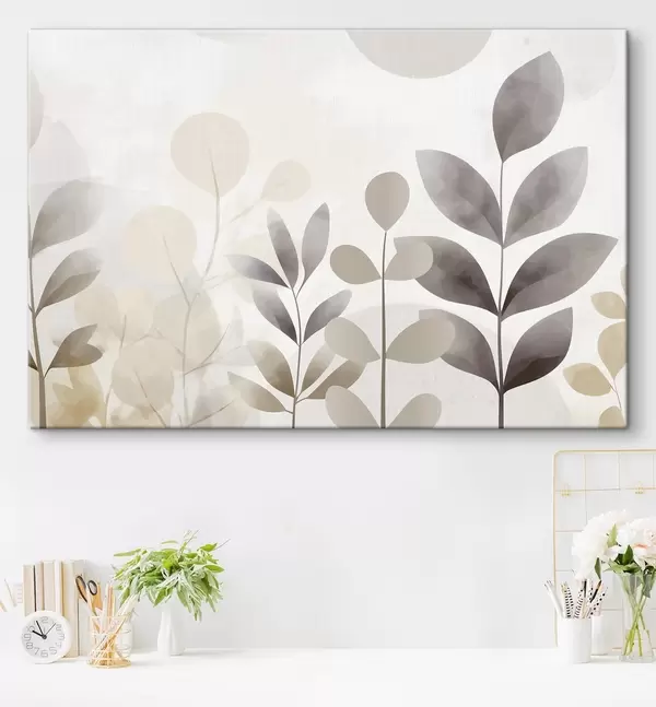 Pictură pe pânză Siluete de frunze în nuanțe de bej și gri, minimalism Nr s48487