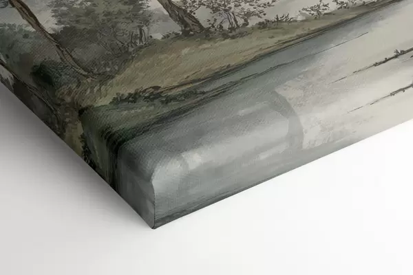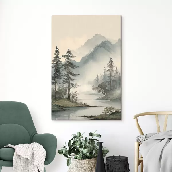 Pictură pe pânză un peisaj montan cu pini și un râu Nr s48532