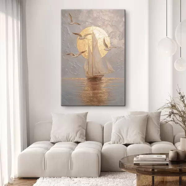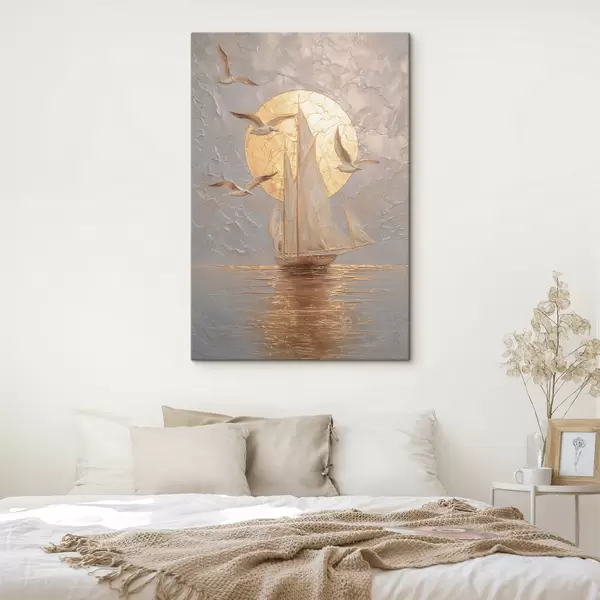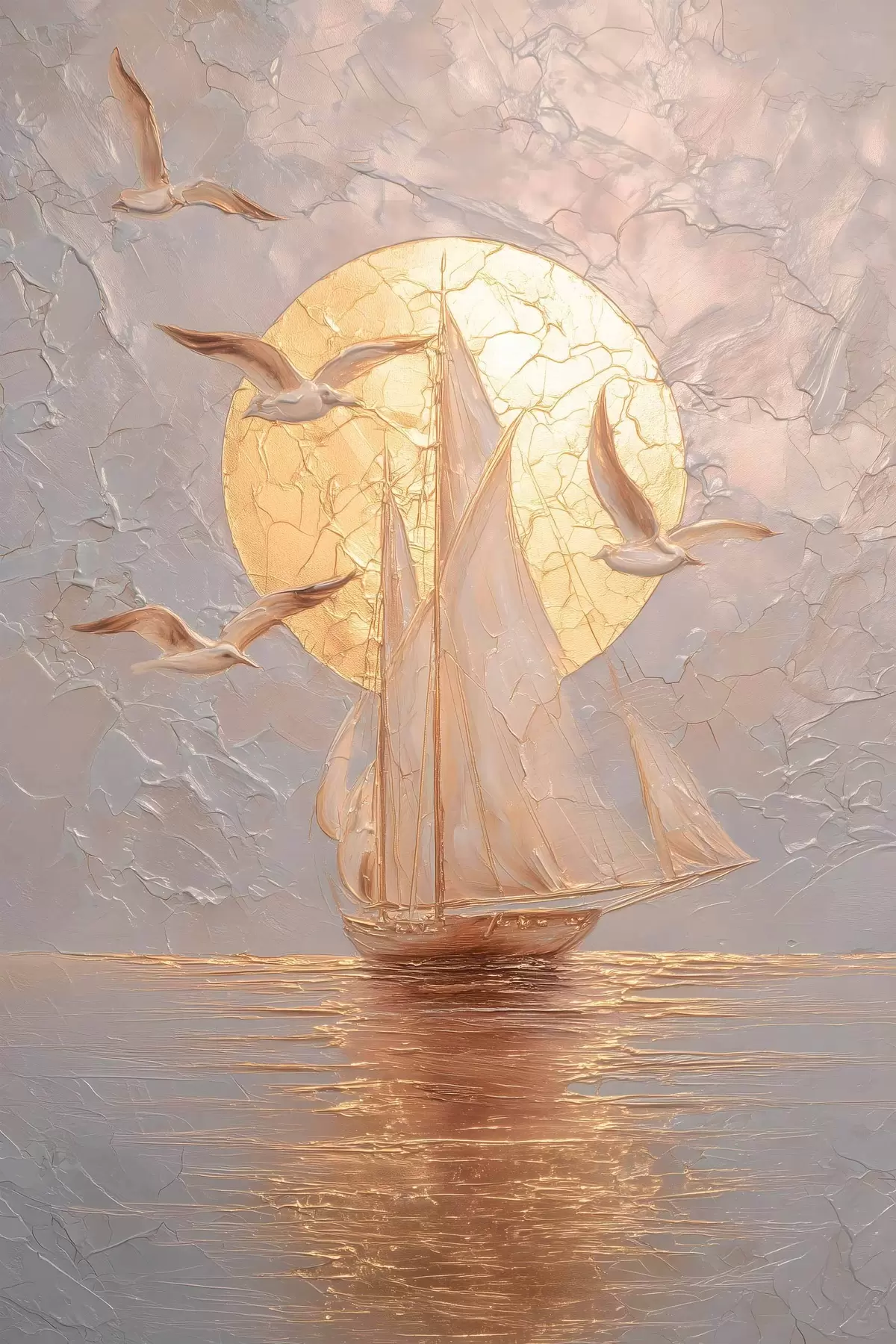 Pictură pe pânză o navă la apus, pictată în stil impasto Nr s48556