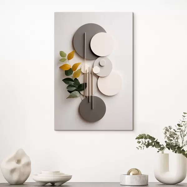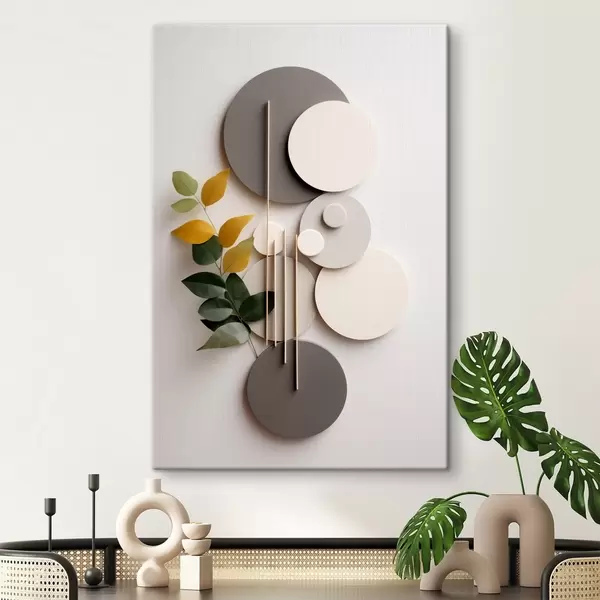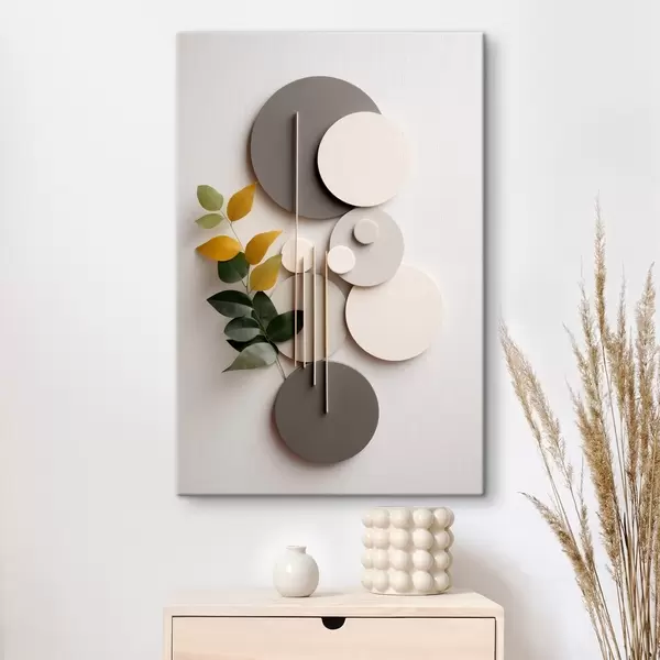 Pictură pe pânză Cercuri geometrice cu o ramură verde cu frunze Nr s48598
