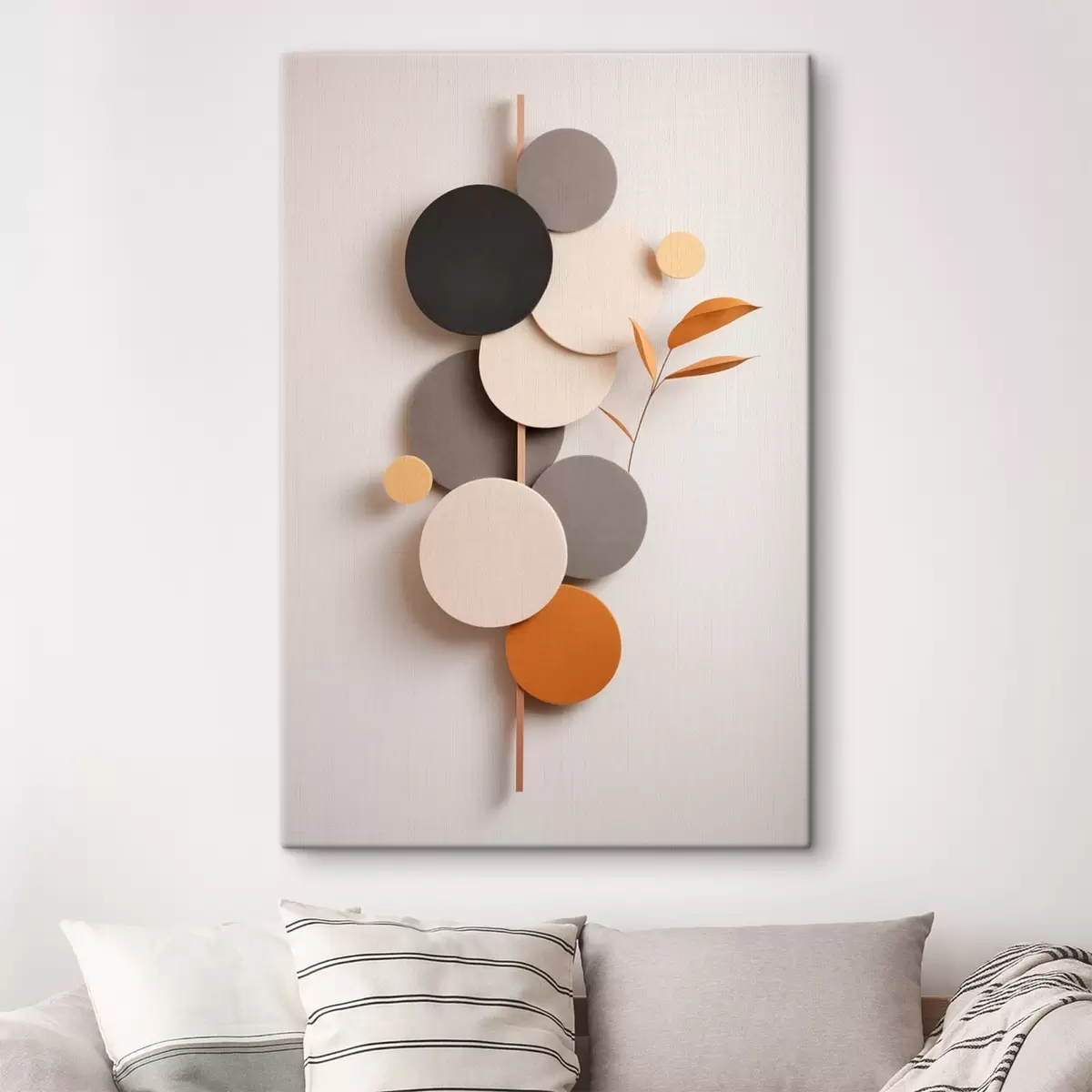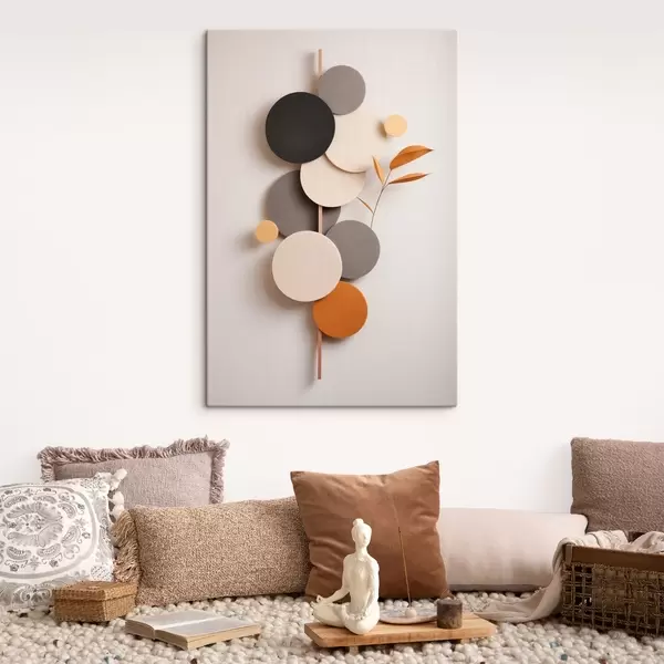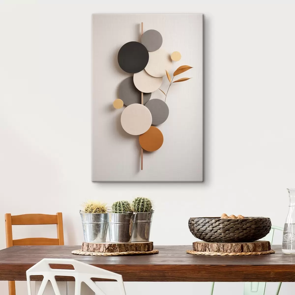Pictură pe pânză Cercuri abstracte cu frunze în nuanțe neutre Nr s48602