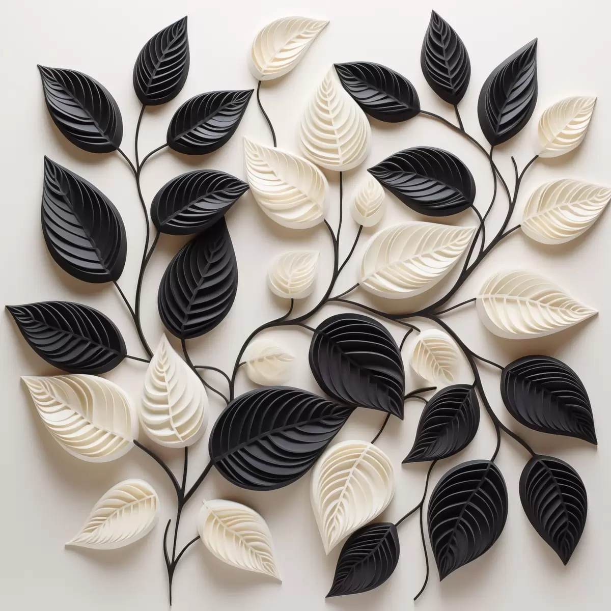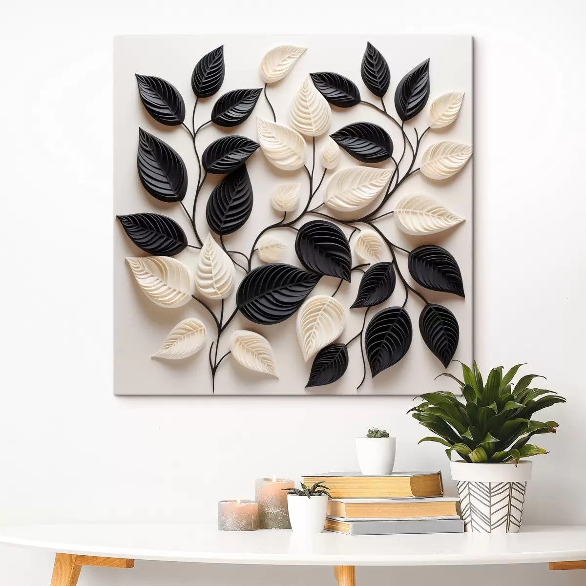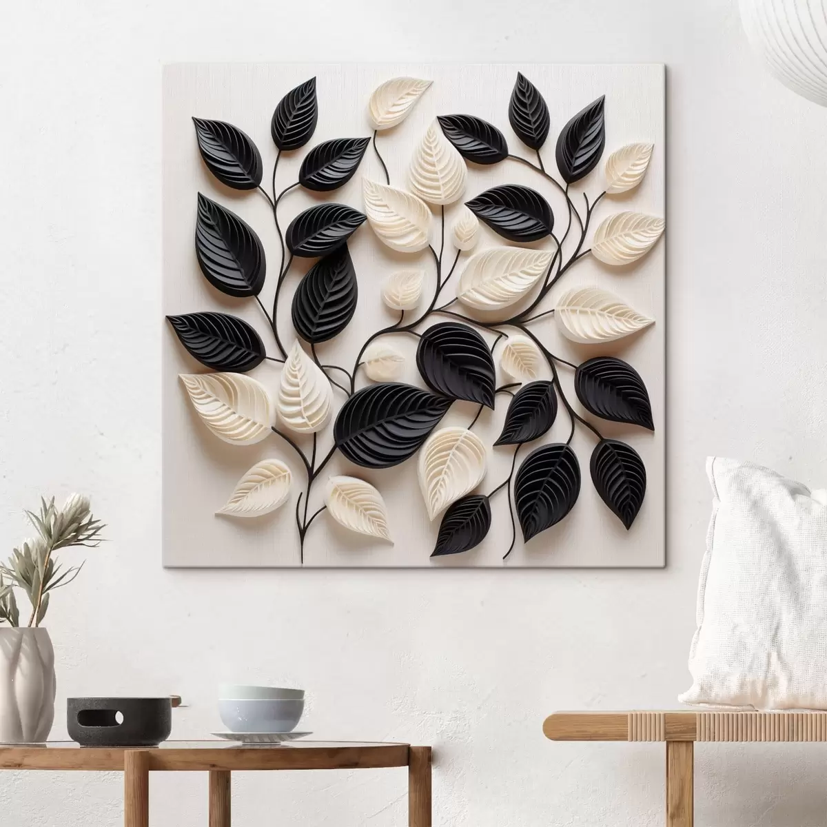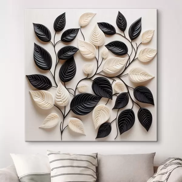 Tablouri Compoziție din frunze negre și deschise la culoare pe ramuri s48606