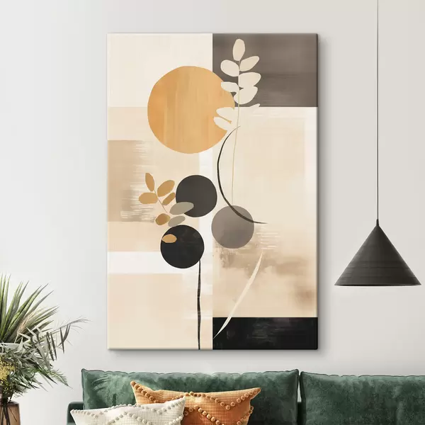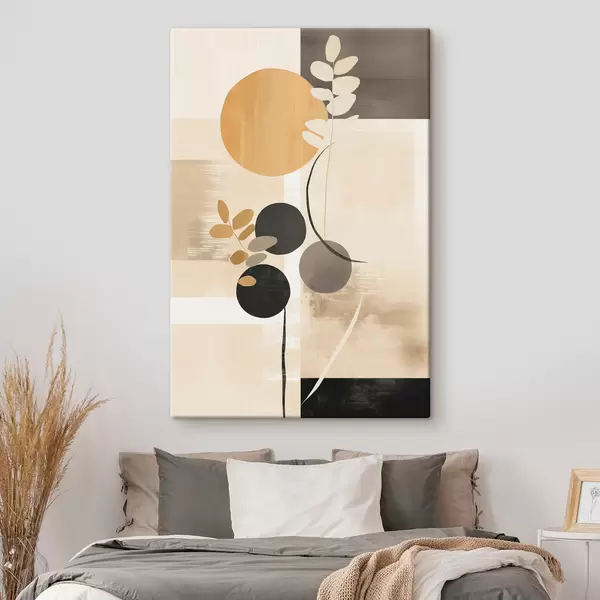 Tablouri O compoziție abstractă cu frunze și cercuri s48612