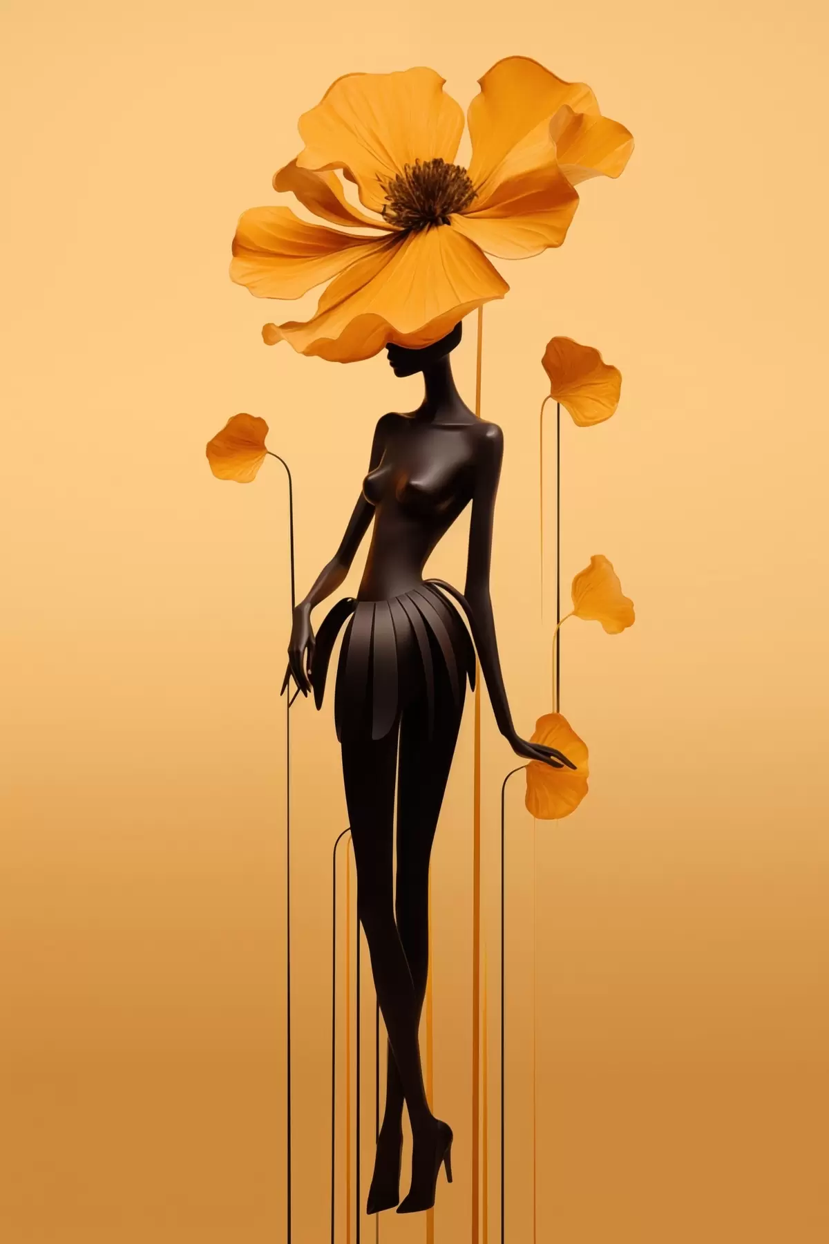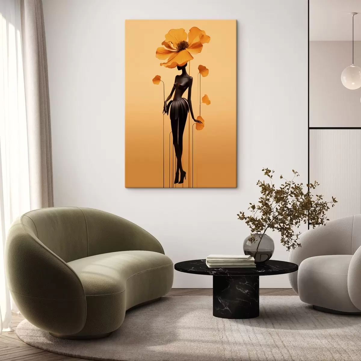 Tablouri O siluetă elegantă cu flori pe un fundal cu degrade cald s48619