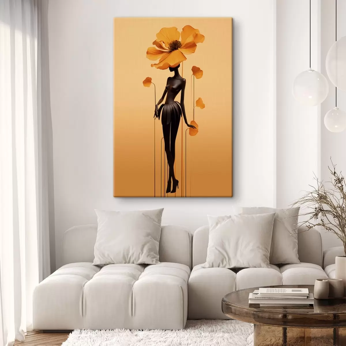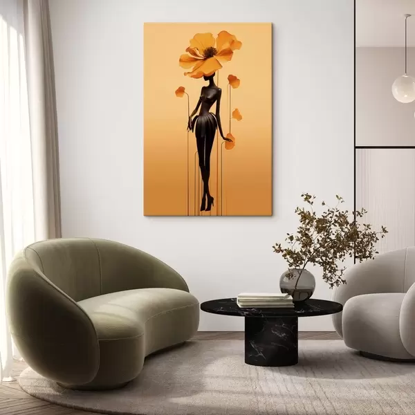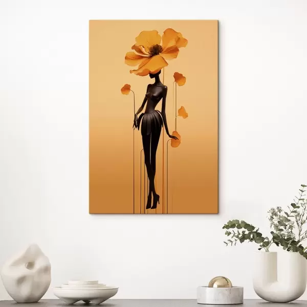 Pictură pe pânză O siluetă elegantă cu flori pe un fundal cu degrade cald Nr s48619