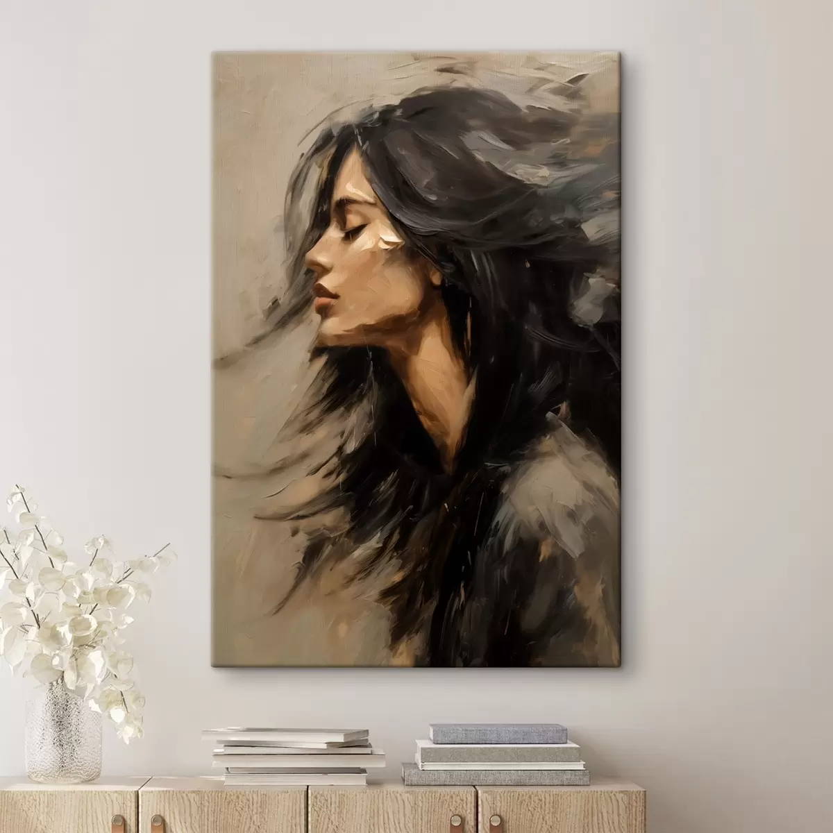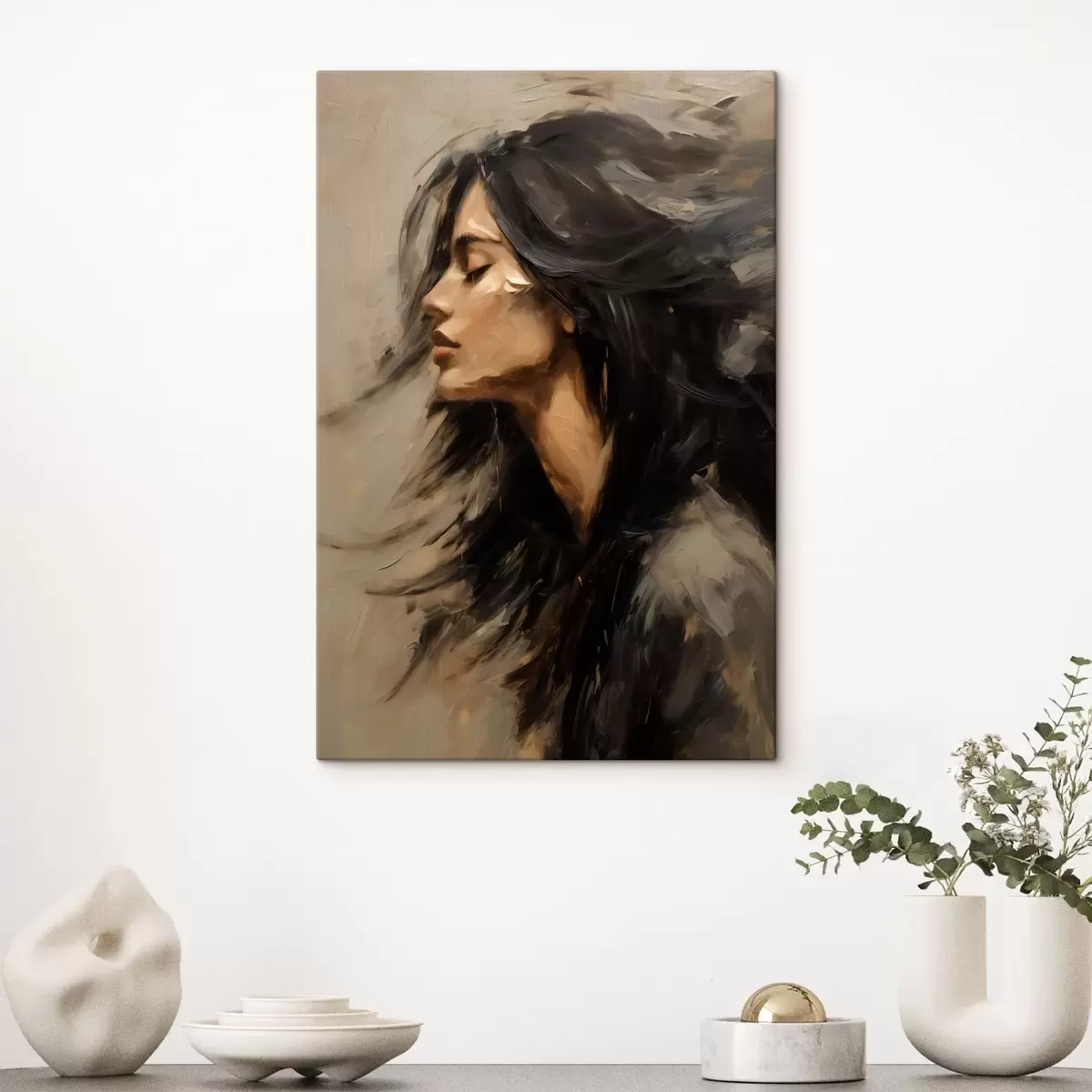 Pictură pe pânză Portret de femeie cu părul desfăcut, în stil pictural Nr s48622
