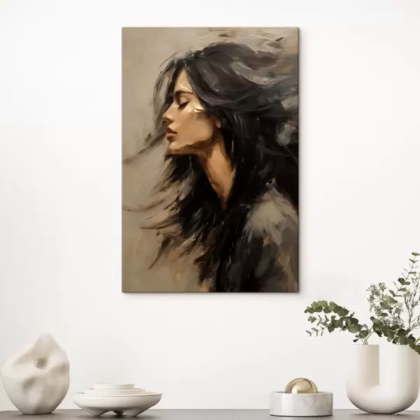 Tablouri Portret de femeie cu părul desfăcut, în stil pictural s48622