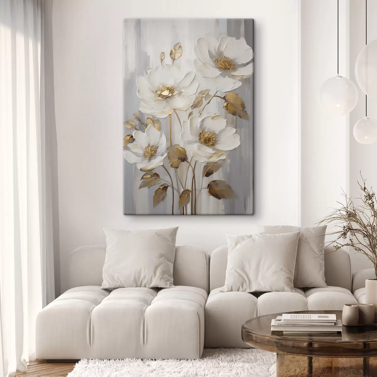 Pictură pe pânză Flori albe cu accente galbene pe un fundal texturat Nr s48722
