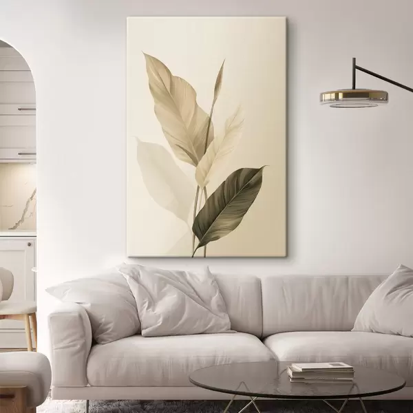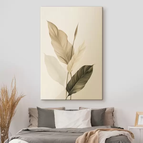 Pictură pe pânză Frunze tropicale mari, în nuanțe de bej și maro, pe un fundal deschis Nr s48725