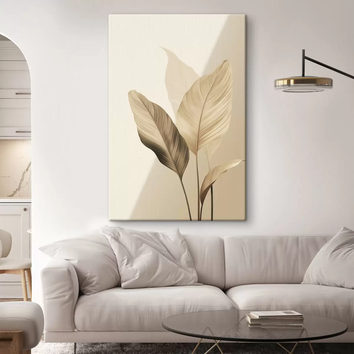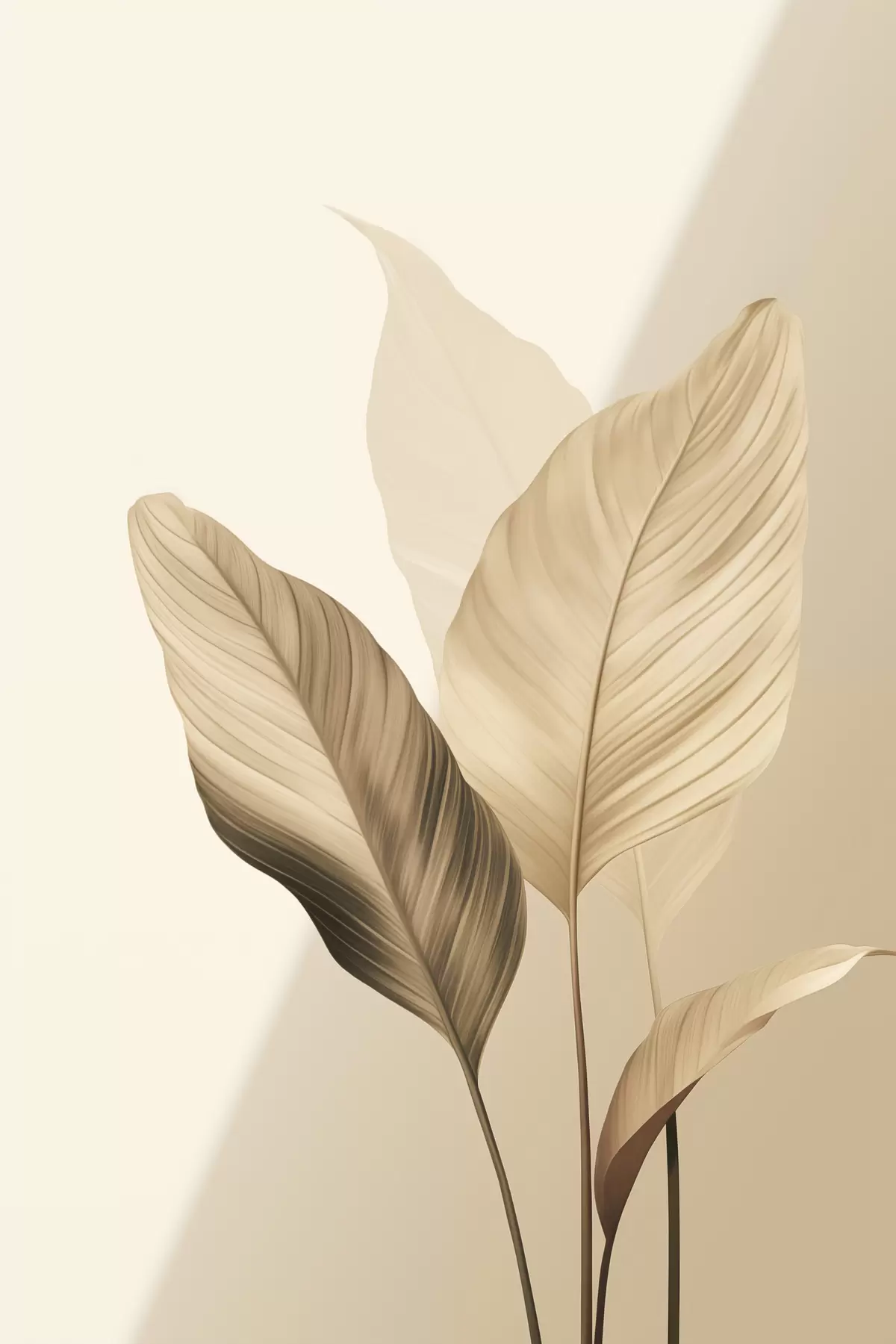 Tablouri Frunze tropicale mari, în nuanțe de bej și maro, pe un fundal deschis s48726