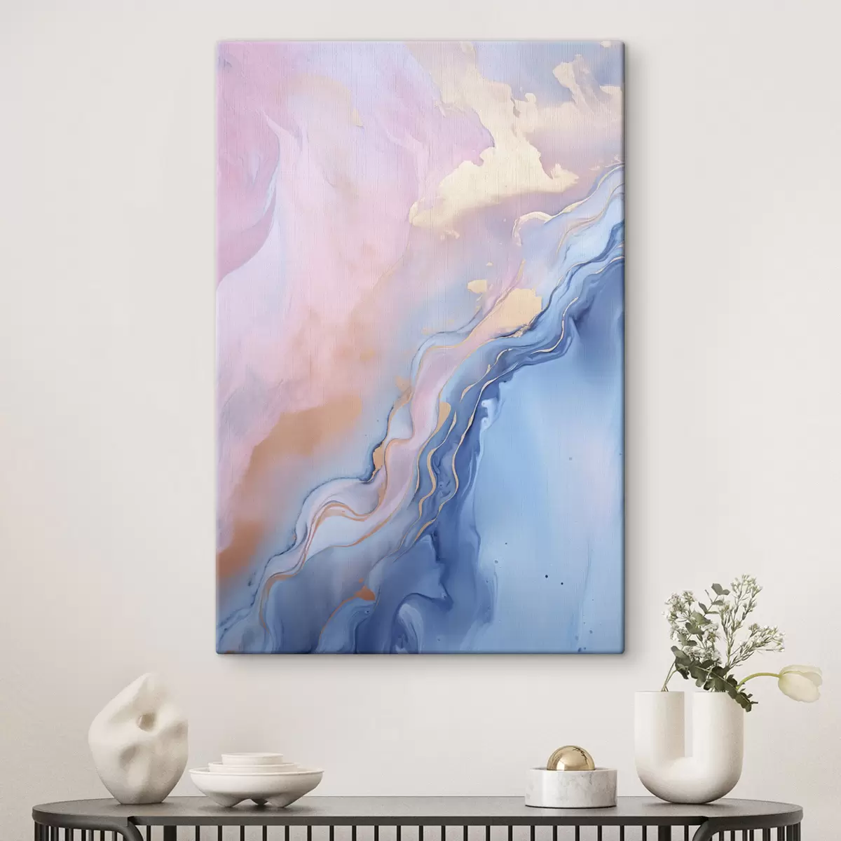 Tablouri Artă fluidă abstractă, cu textură, cu motive învolburate în nuanțe de roz și albastru s48729