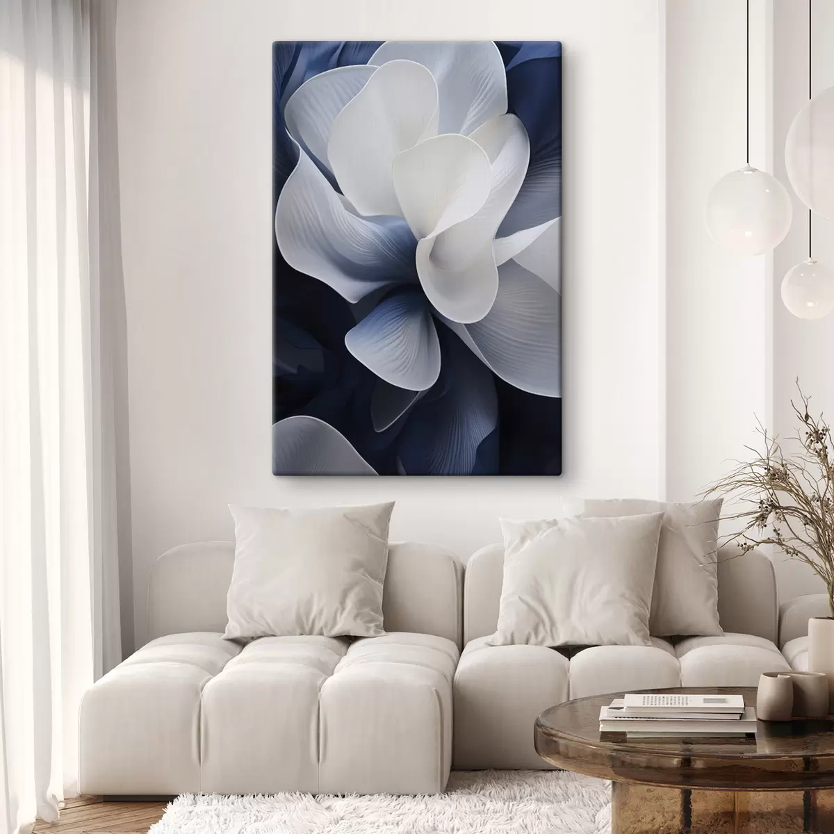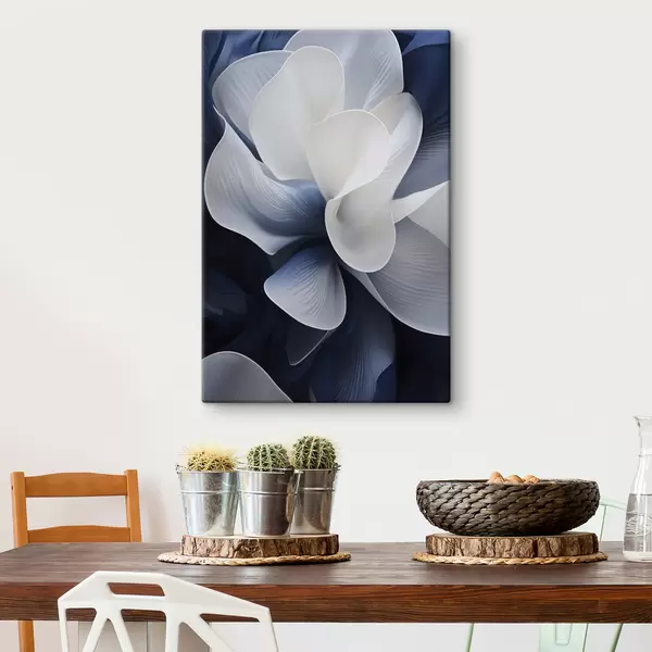 Pictură pe pânză Petale de flori abstracte, albastre și albe, pe un fundal închis Nr s48732