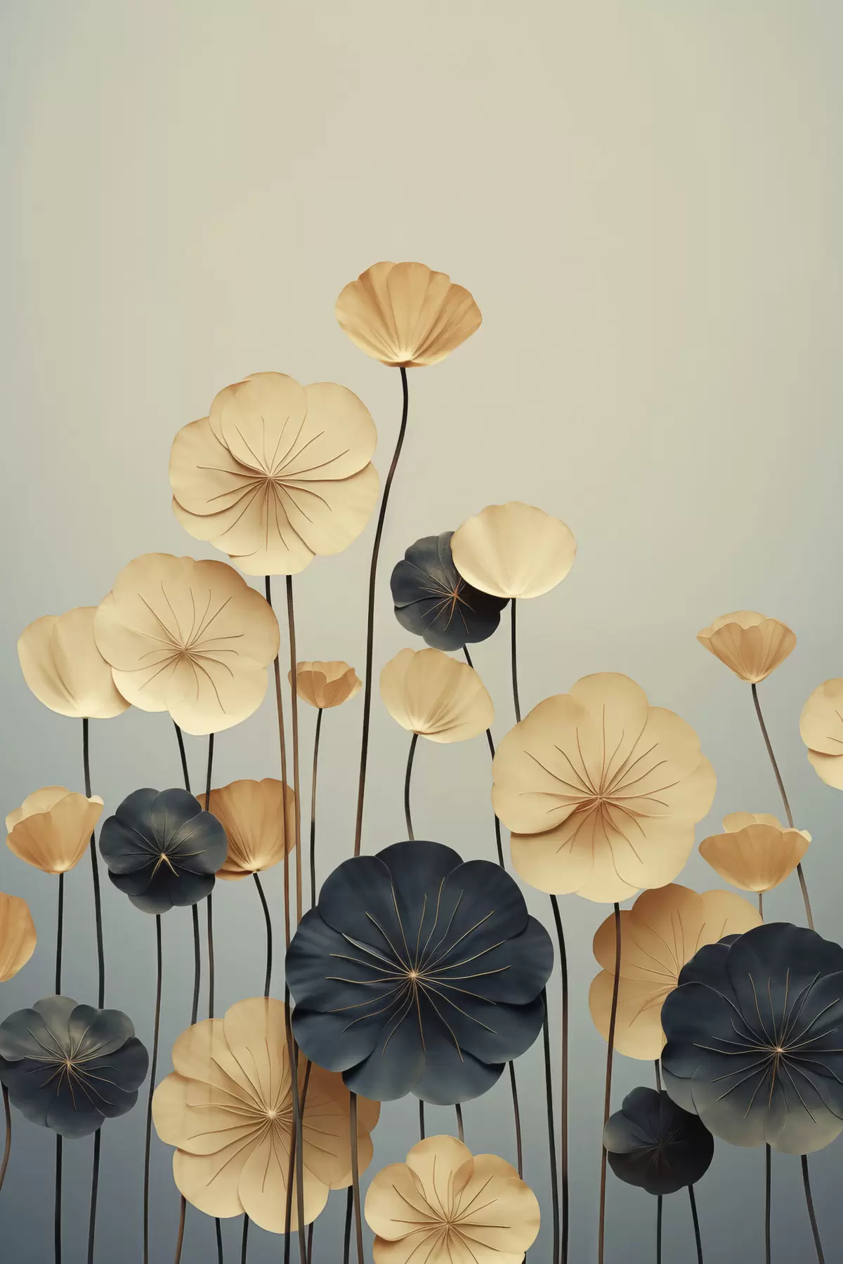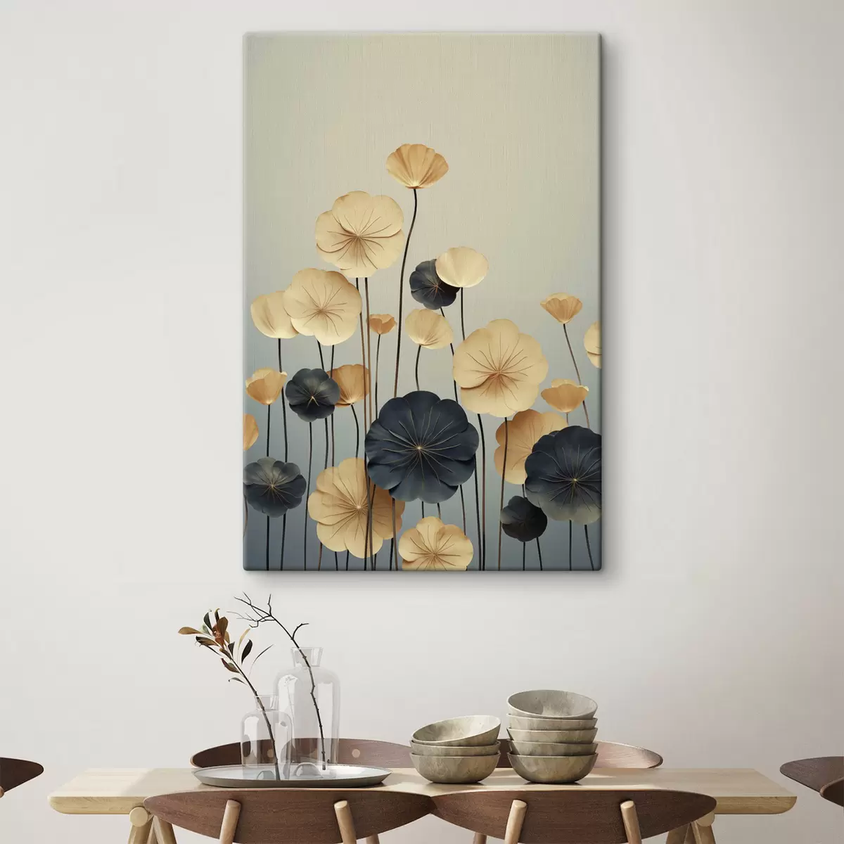 Tablouri Frunze de nufăr pe un fundal discret, în nuanțe de bej și albastru închis s48734