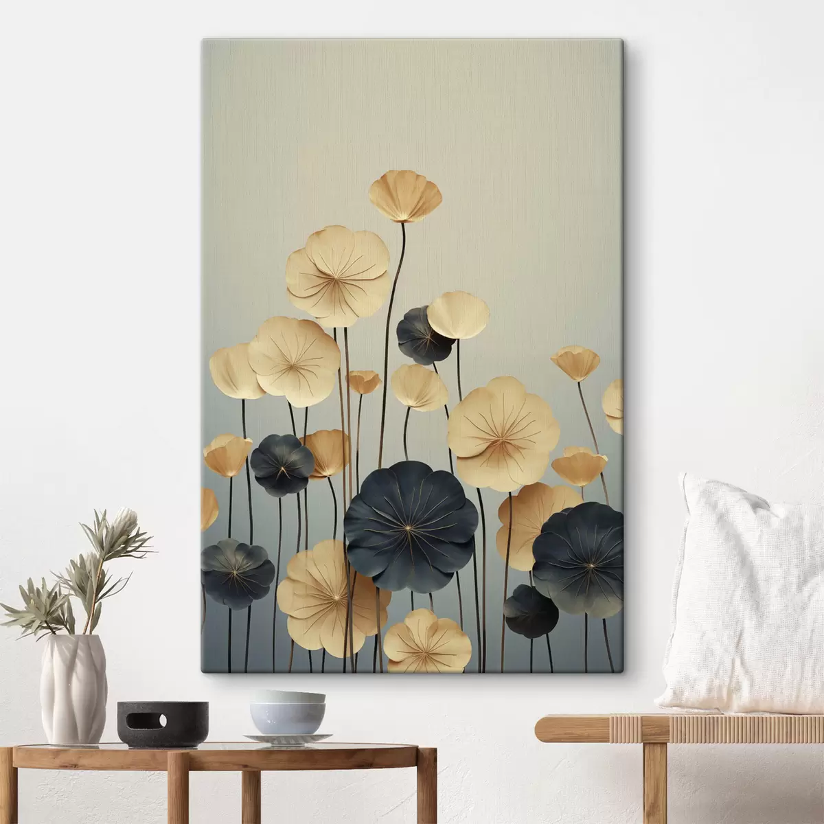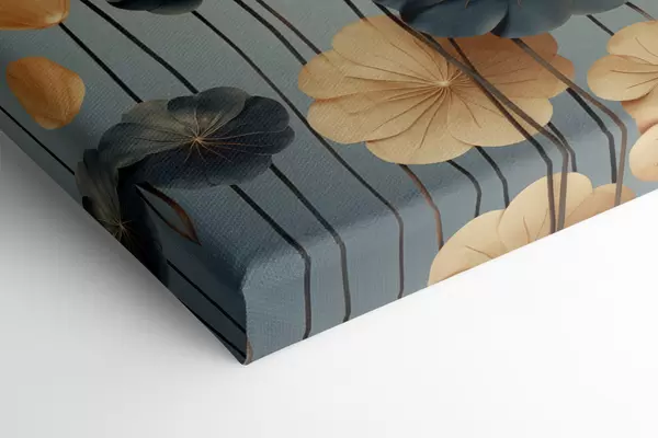 Pictură pe pânză Frunze de nufăr pe un fundal discret, în nuanțe de bej și albastru închis Nr s48734