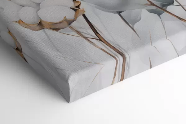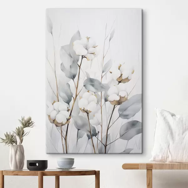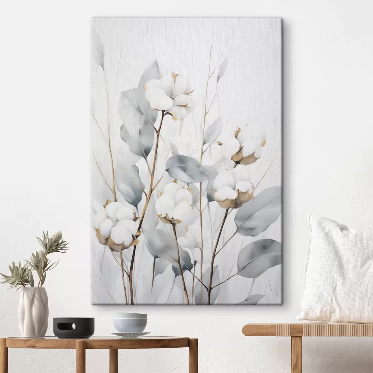 Pictură pe pânză O plantă de bumbac albă, cu frunze de un albastru-verzui pal, pe un fundal deschis Nr s48743