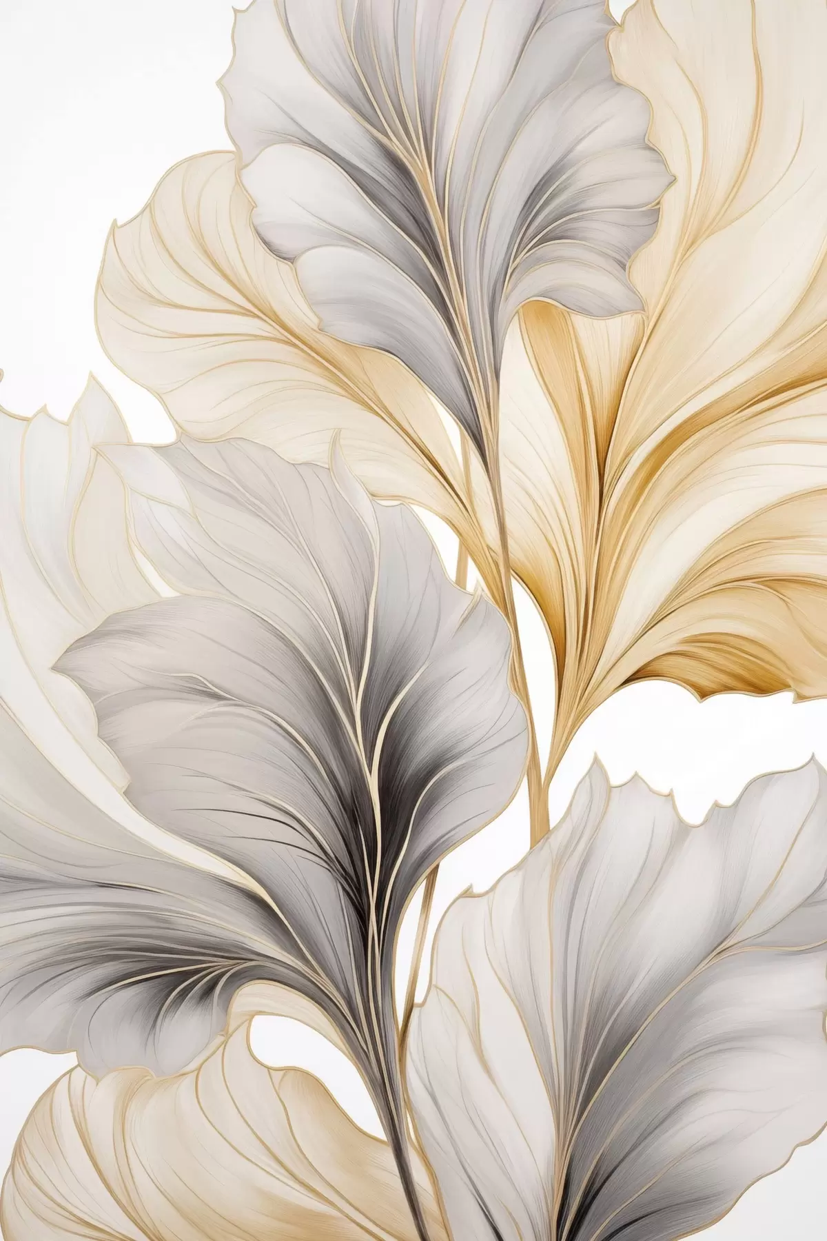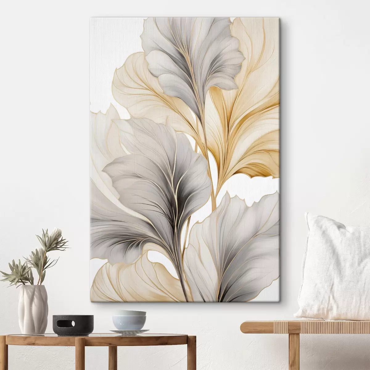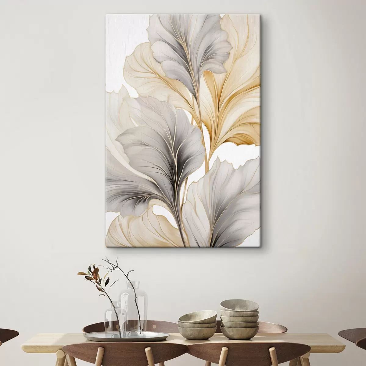 Pictură pe pânză Frunze mari, translucide, în nuanțe de gri și galben Nr s48745
