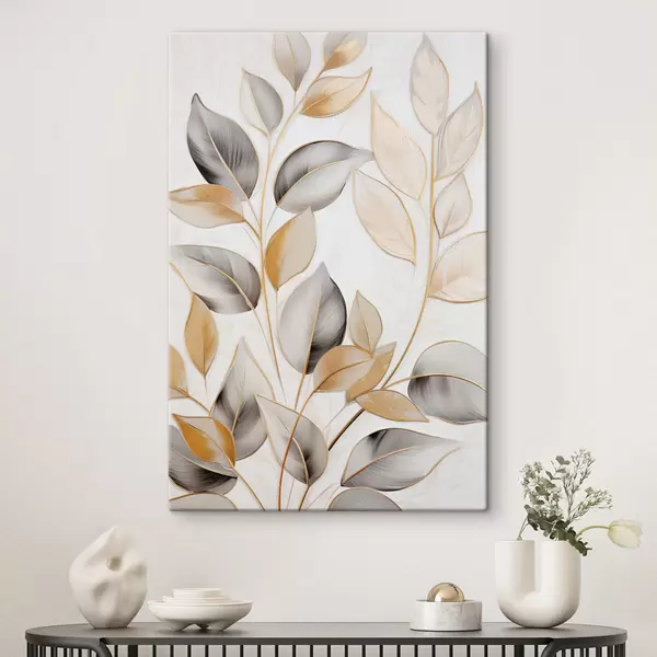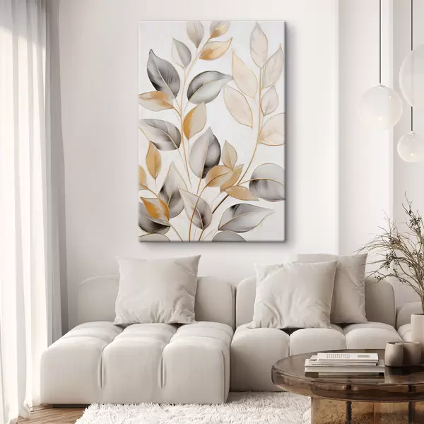 Pictură pe pânză Frunze mari, translucide, în nuanțe de gri și galben Nr s48746