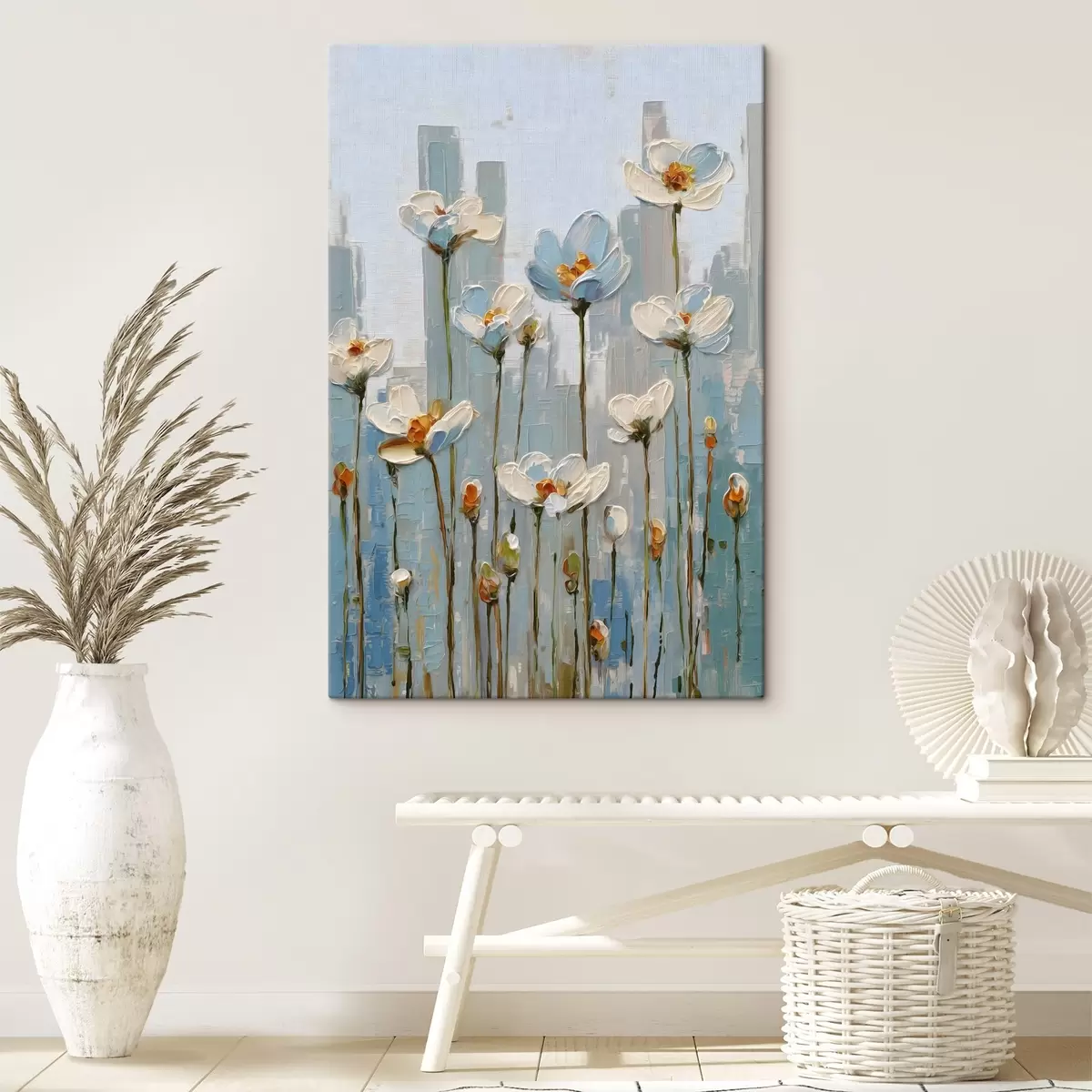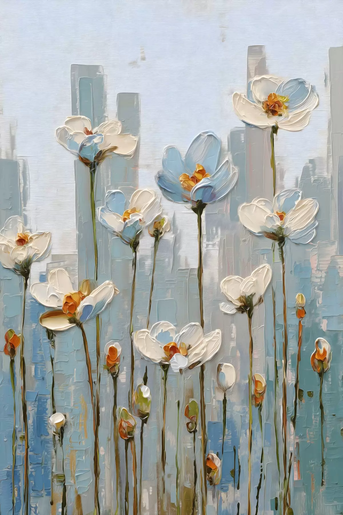 Pictură pe pânză flori pe fundalul orașului, în stilul picturii în ulei Nr s48786