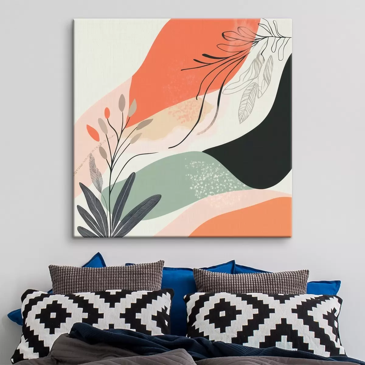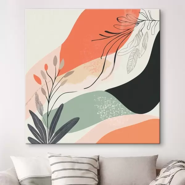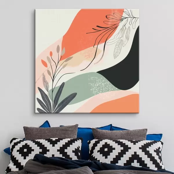 Pictură pe pânză Motivele vegetale stilizate pe un fundal de pete de acuarelă Nr s48839