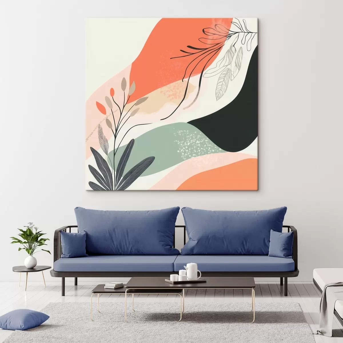 Tablouri Motivele vegetale stilizate pe un fundal de pete de acuarelă s48839