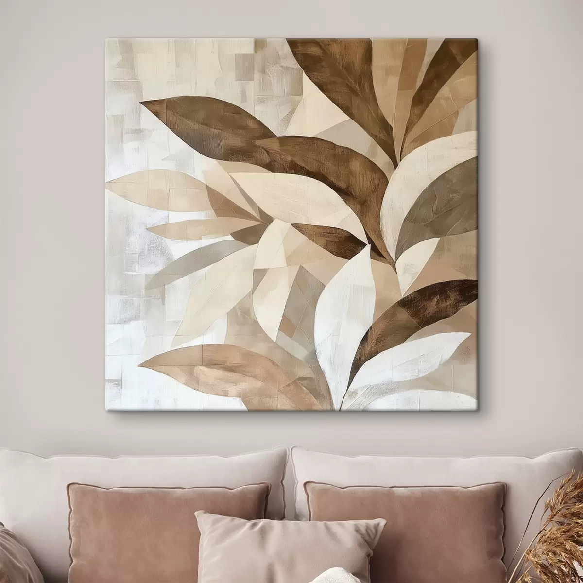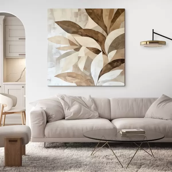 Tablouri Compoziție florală abstractă cu frunze mari, în nuanțe de maro-bej s48848