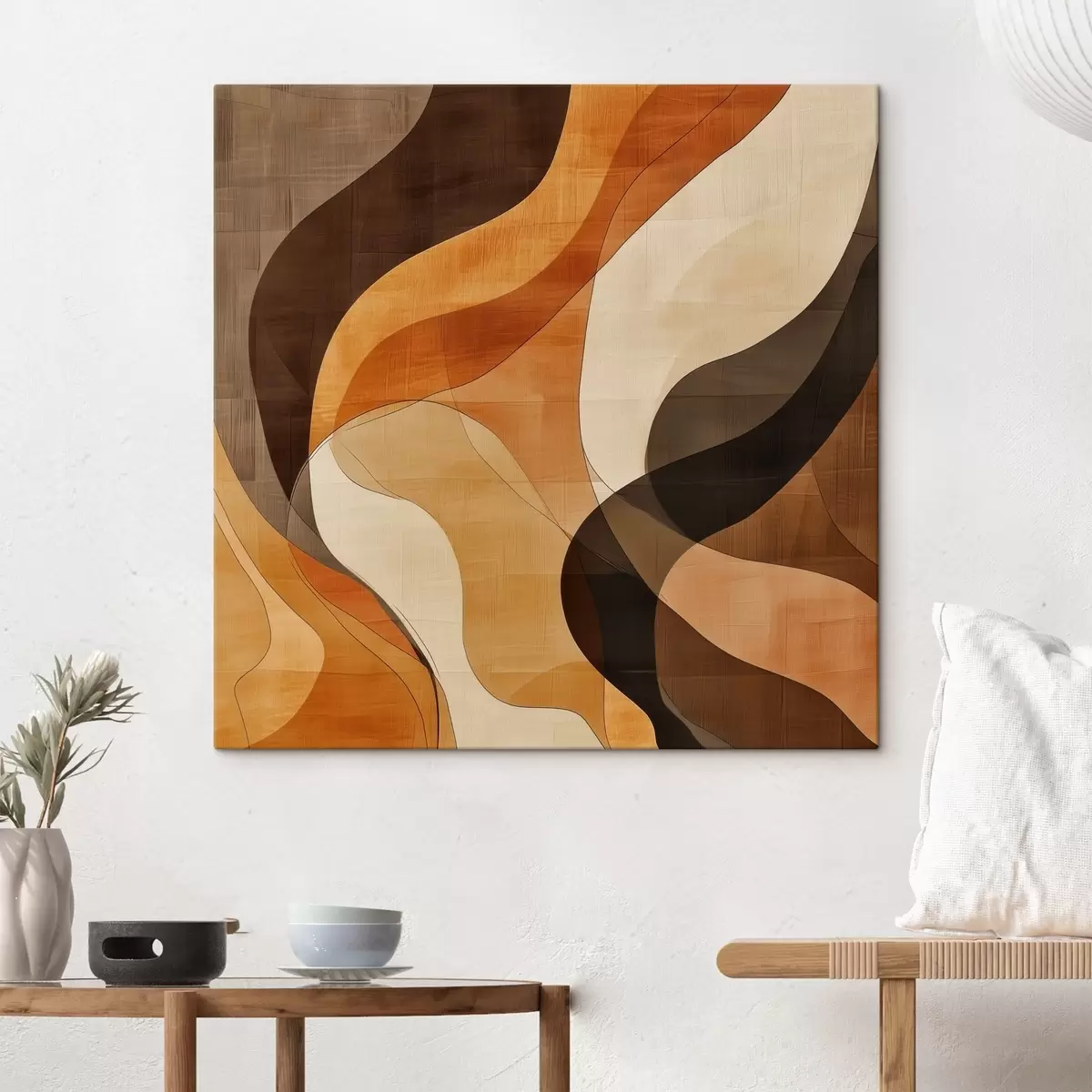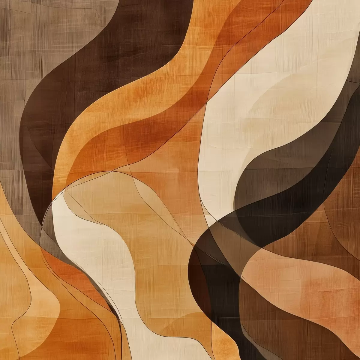 Tablouri Compoziție abstractă cu linii ondulate dinamice, într-o paletă de culori maro-teracotă s48851
