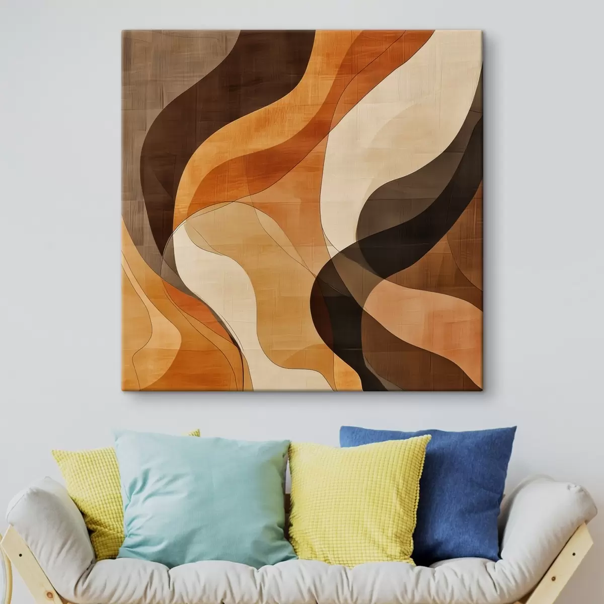 Pictură pe pânză Compoziție abstractă cu linii ondulate dinamice, într-o paletă de culori maro-teracotă Nr s48851