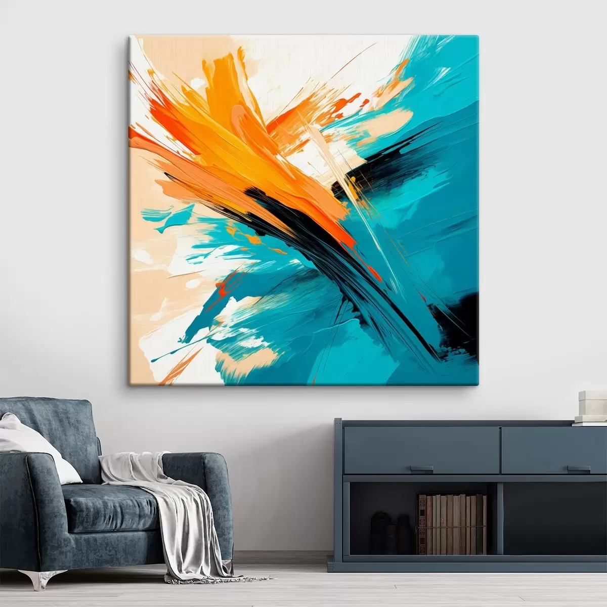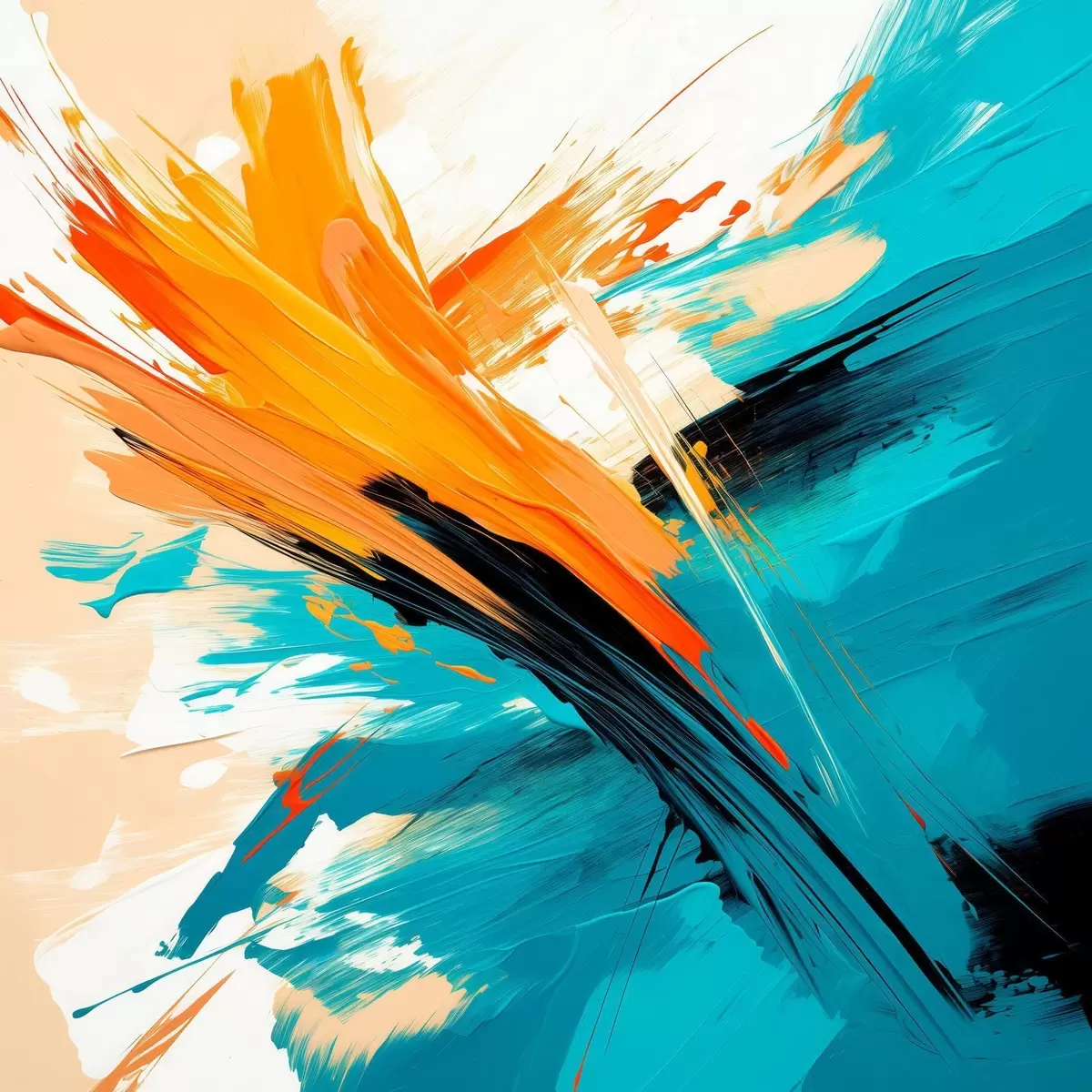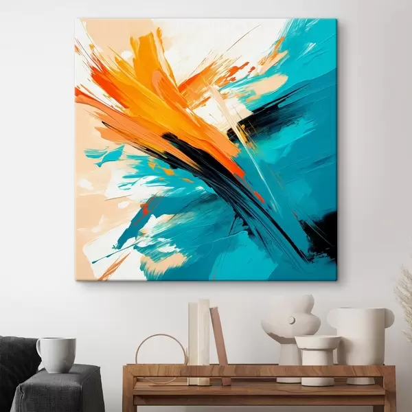 Tablouri O compoziție luminoasă, realizată într-o paletă de culori turcoaz și teracotă, într-un stil pictural contemporan s48855