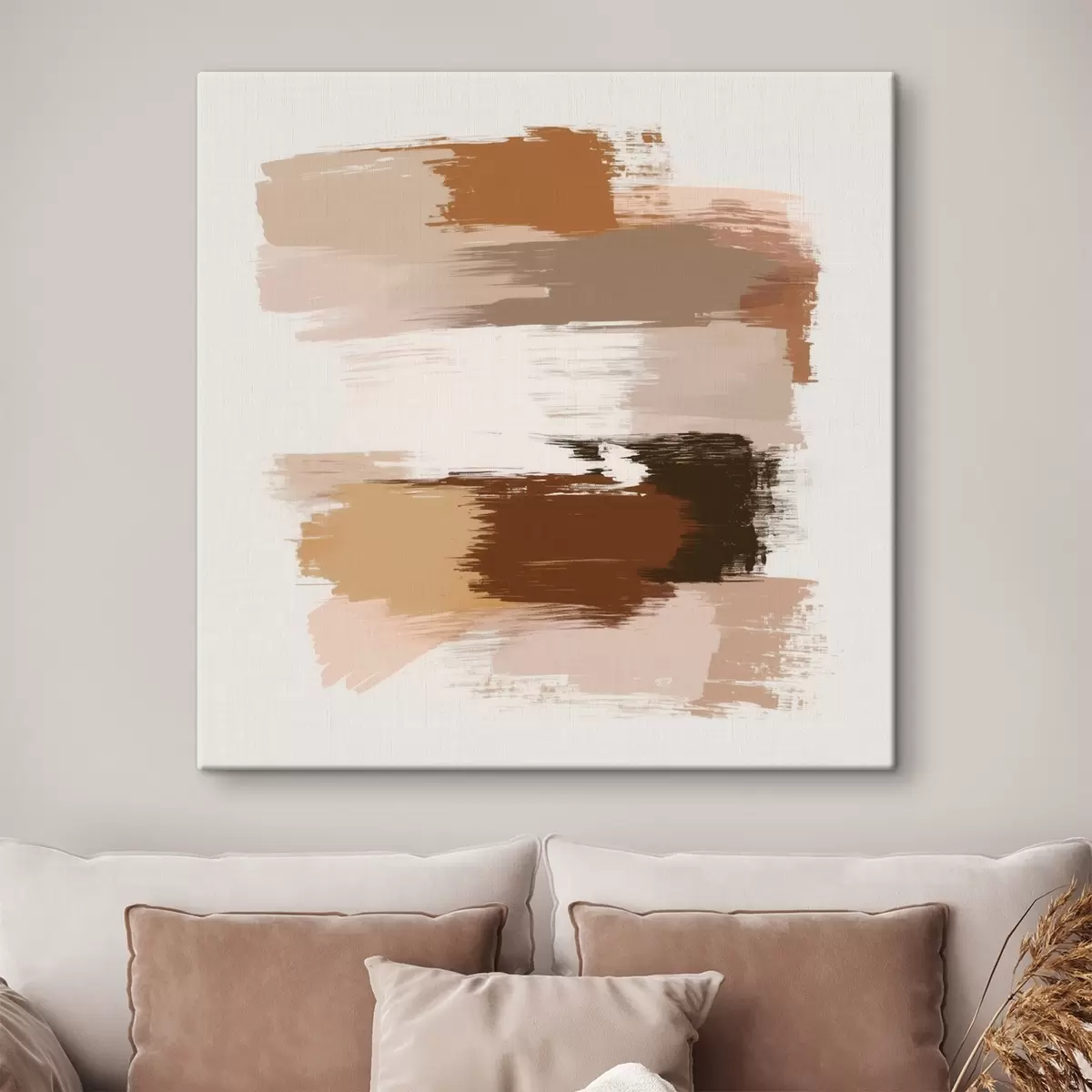 Pictură pe pânză Compoziție minimalistă cu tușe orizontale în nuanțe de cafea și teracotă Nr s48858